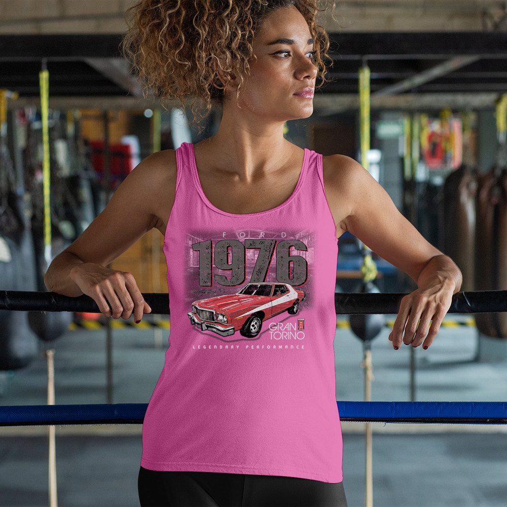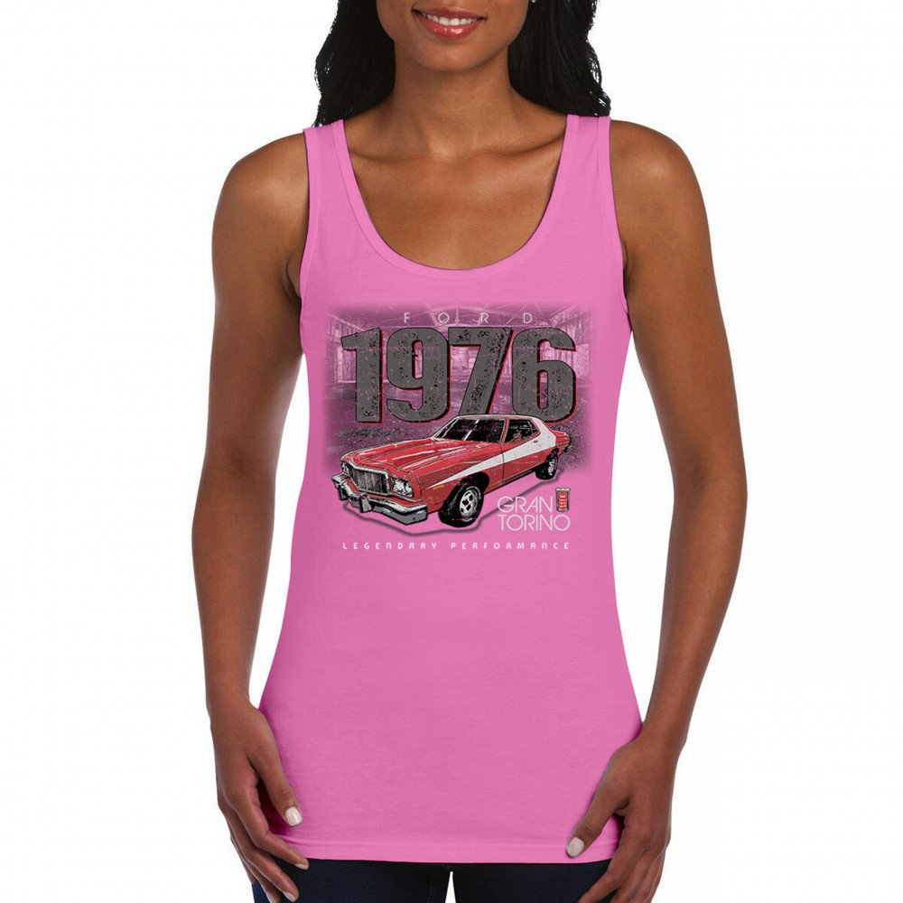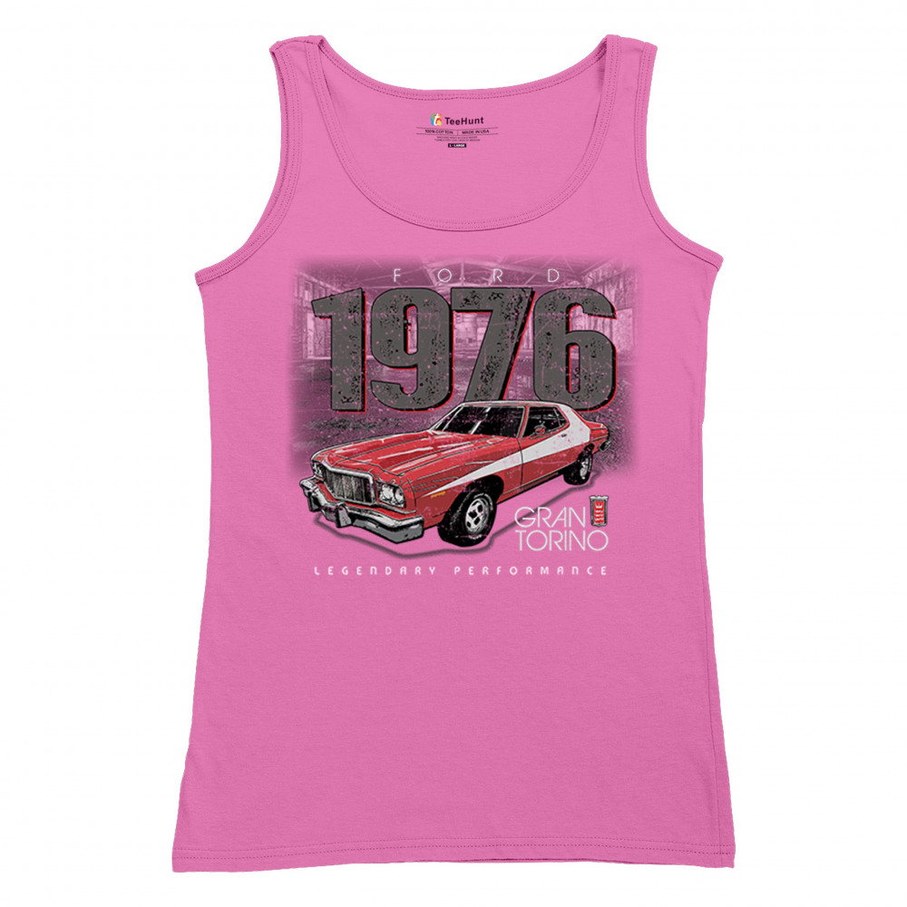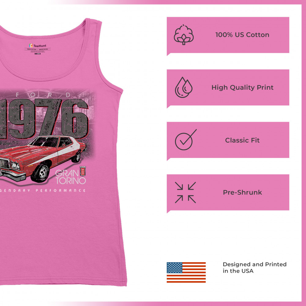 1976 Ford Gran Torino design with red and white retro style. Perfect for muscle car fans, Ford lovers, and classic car event gear.