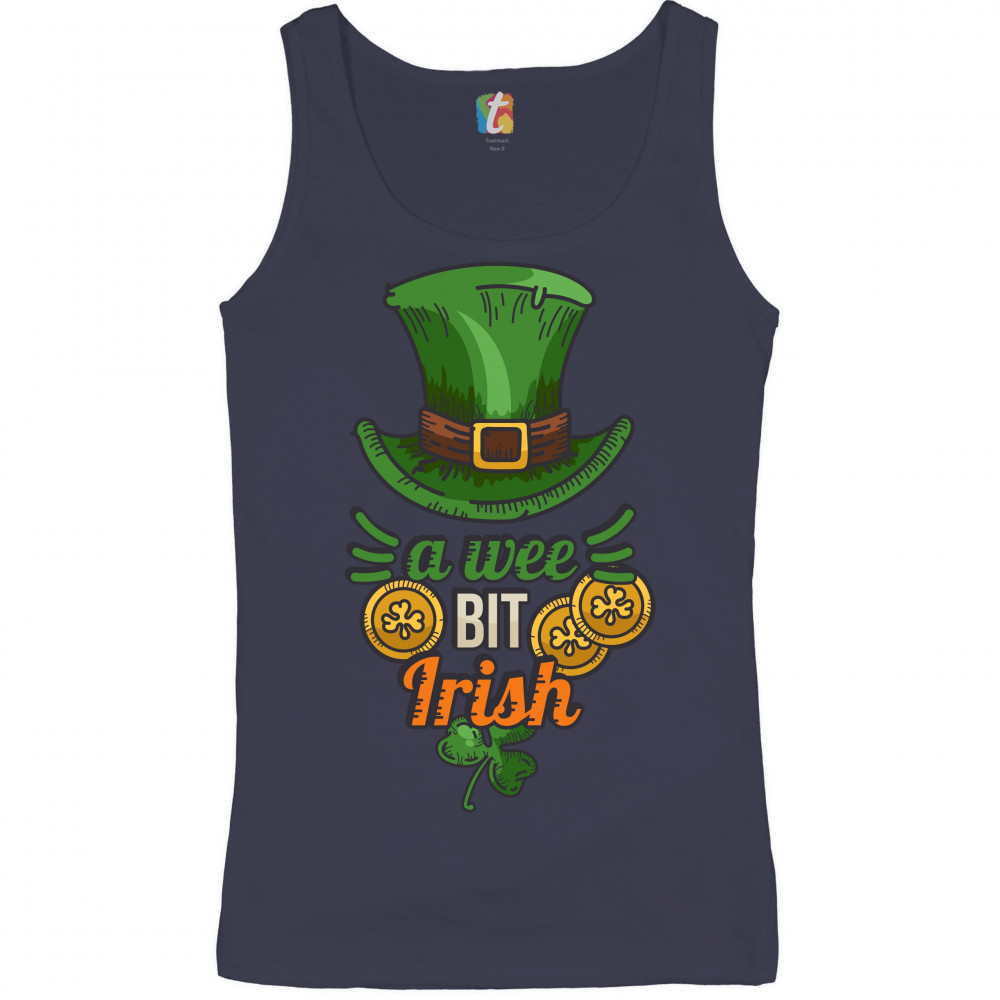 A WEE BIT IRISH women's tank top st. patrick's day shamrock leprechaun hat navy blue