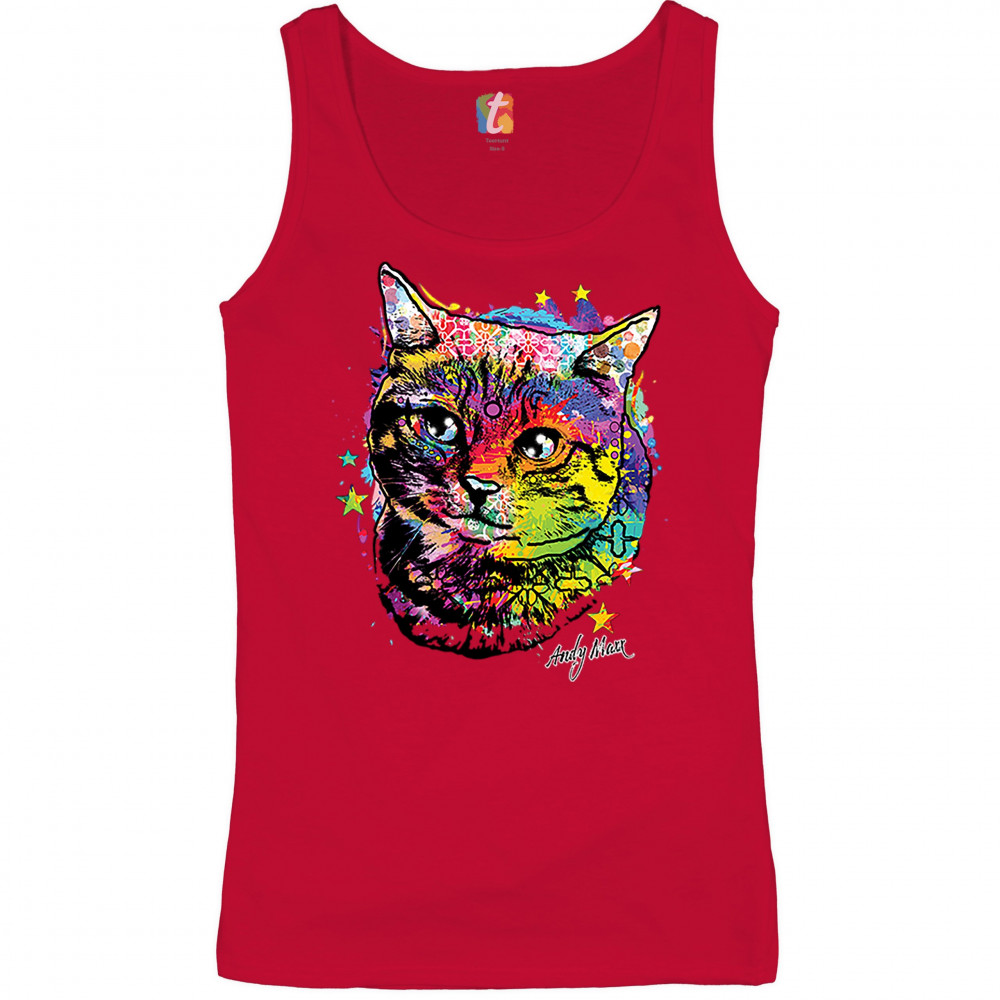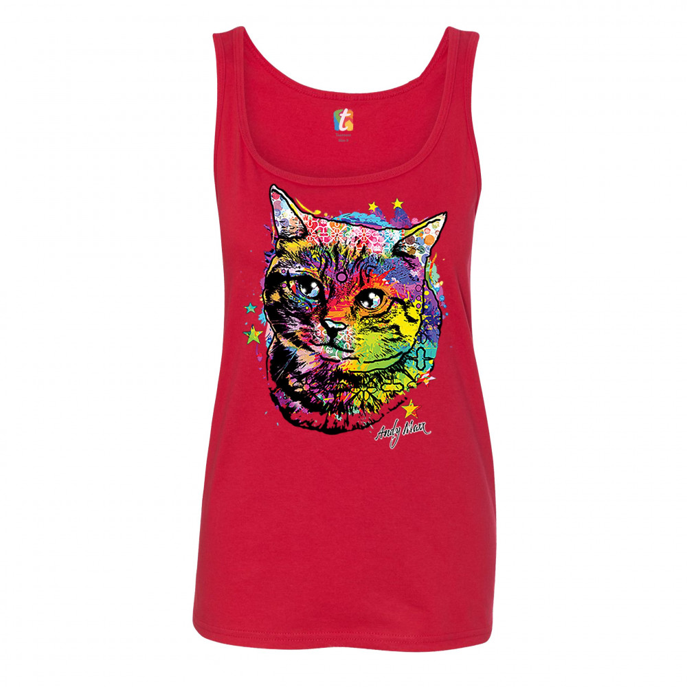 ADORABLE KITTEN women's tank top neon multicolor kitty andy maxx cat lover red