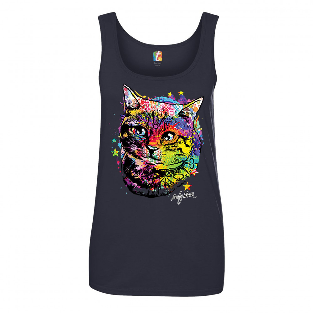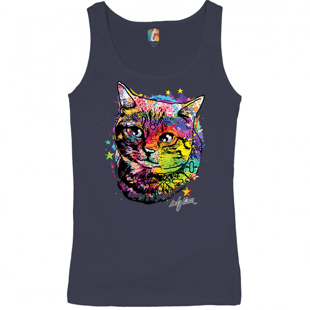 ADORABLE KITTEN women's tank top neon multicolor kitty andy maxx cat lover navy blue