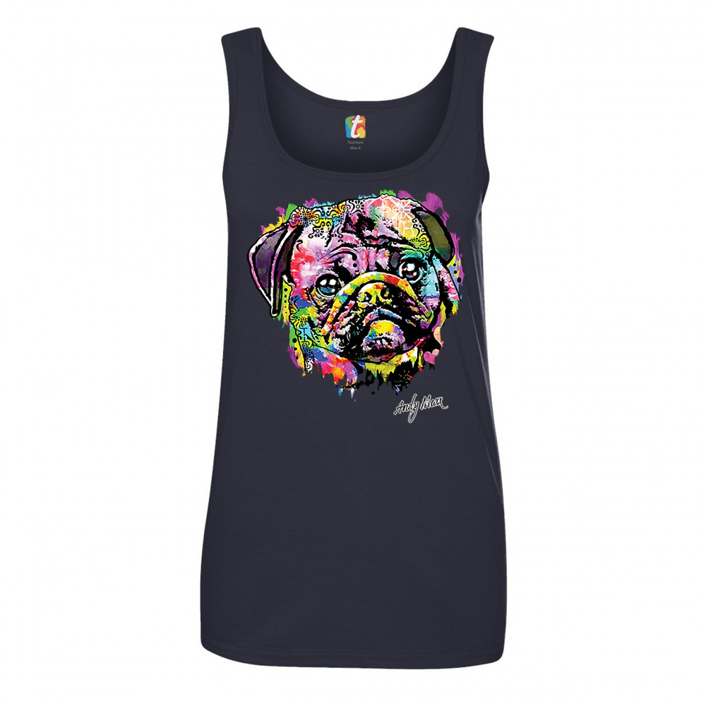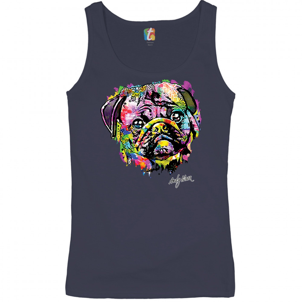 ADORABLE PUG women's tank top andy maxx pet owner i love my dog doggie navy blue