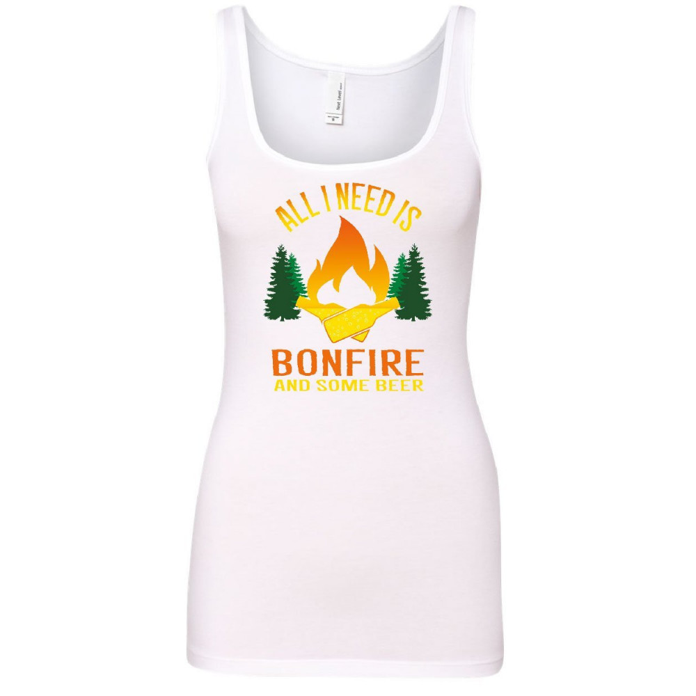 ALL I NEED IS BONFIRE & SOME BEER women's tank top funny camping drinking top white