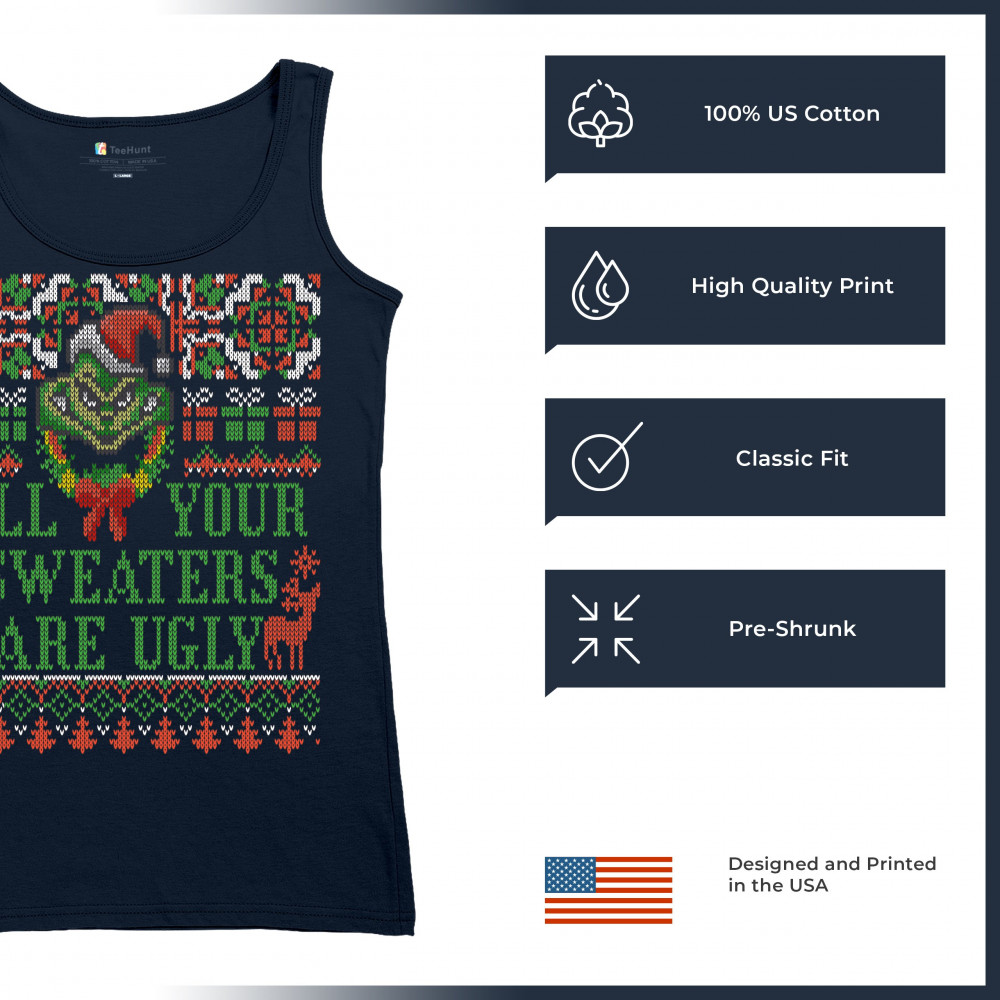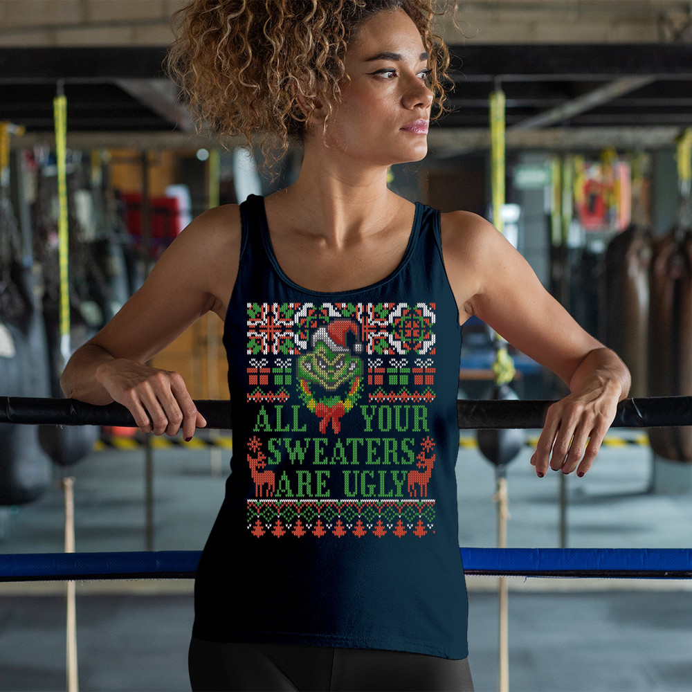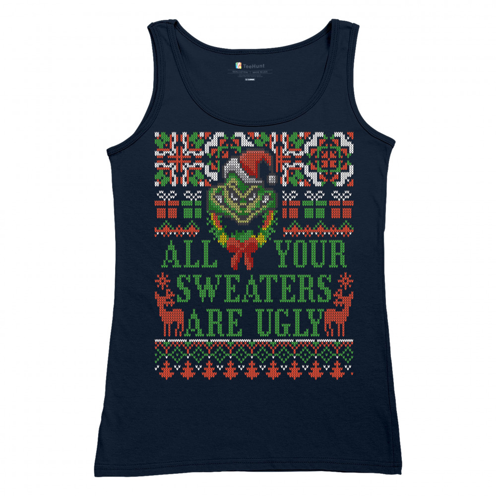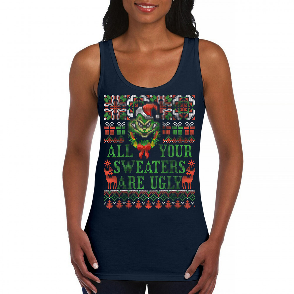 ALL YOUR SWEATERS ARE UGLY women's tank top funny merry christmas rudolph navy blue