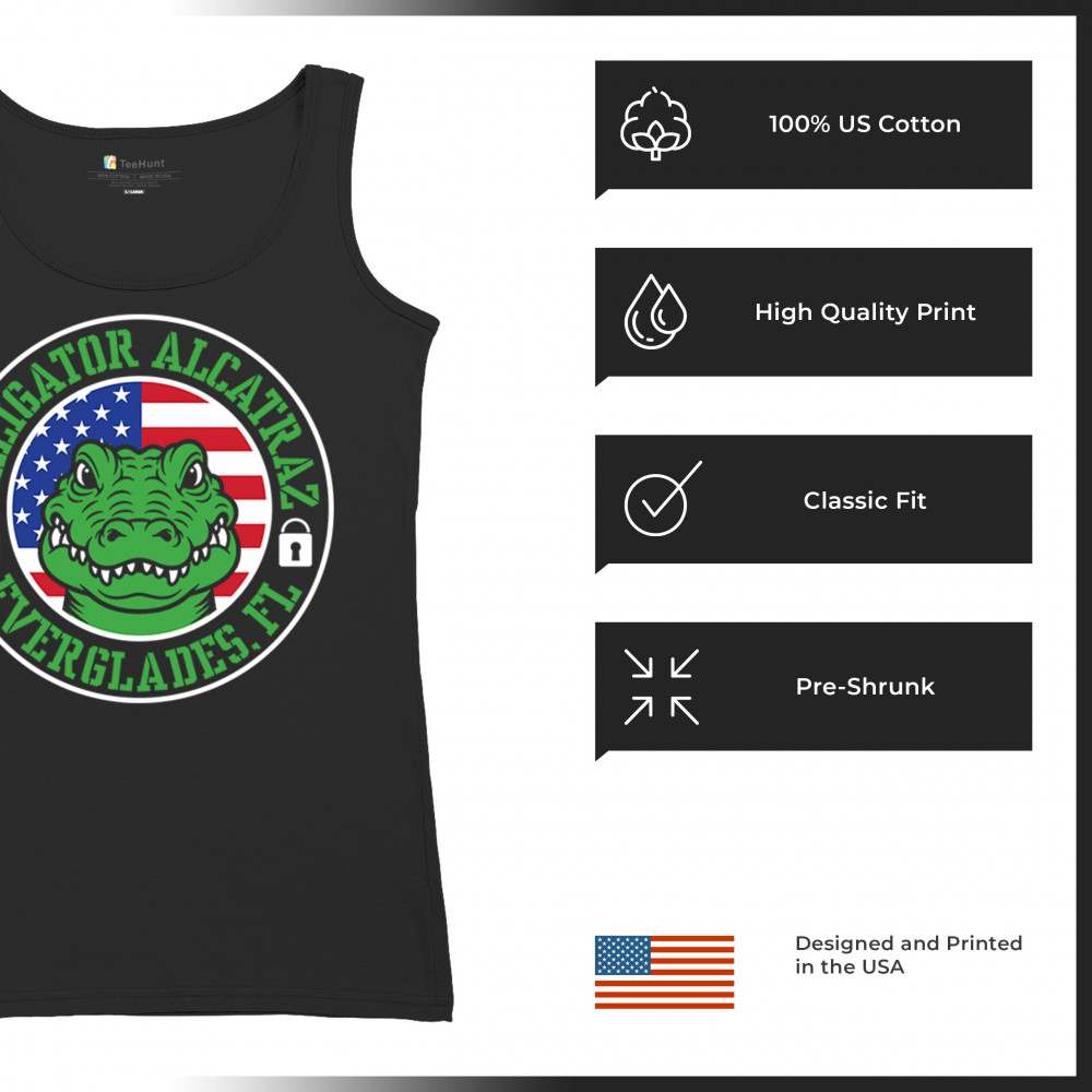 Stand tall in your values with this Alligator Alcatraz Everglades design. A fierce mash-up of patriotic graphics and political edge—perfect for conservative voices, USA pride supporters, and America First believers. Lock in your statement with this bold, affordable everyday style.