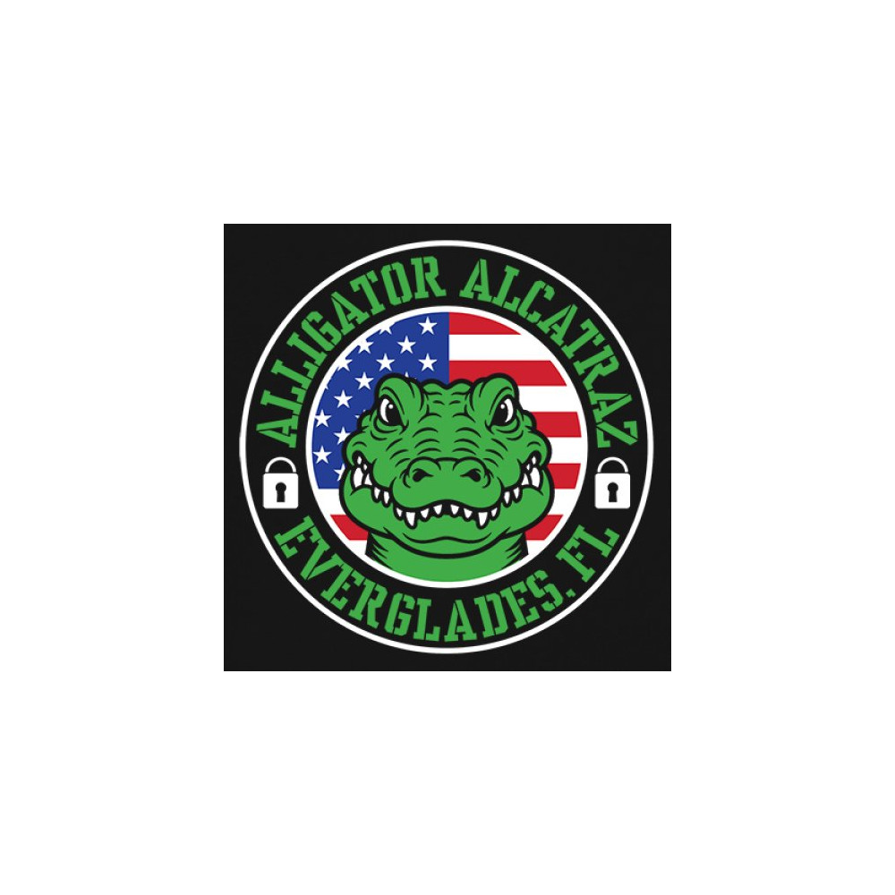 Bold Alligator Alcatraz design with USA flag and conservative message. Patriotic, America First, and proud to take a stand for national values.