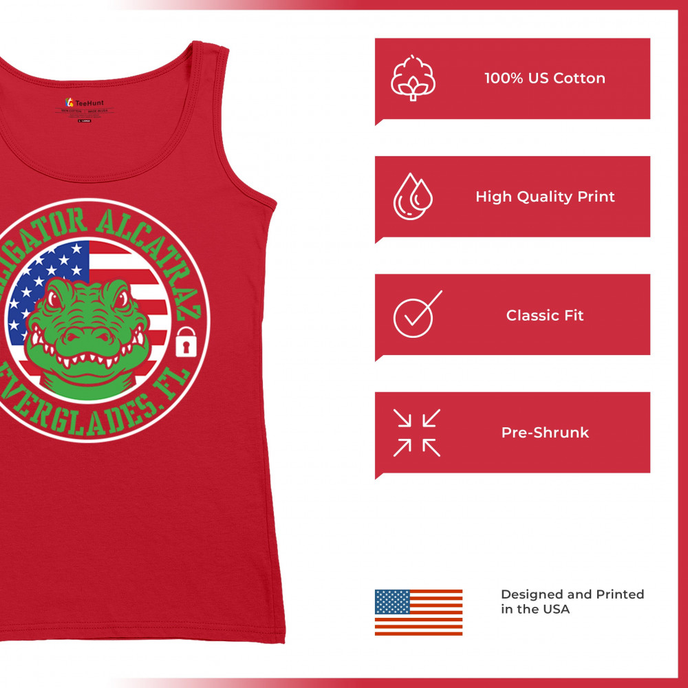 Bold Alligator Alcatraz design with USA flag and conservative message. Patriotic, America First, and proud to take a stand for national values.