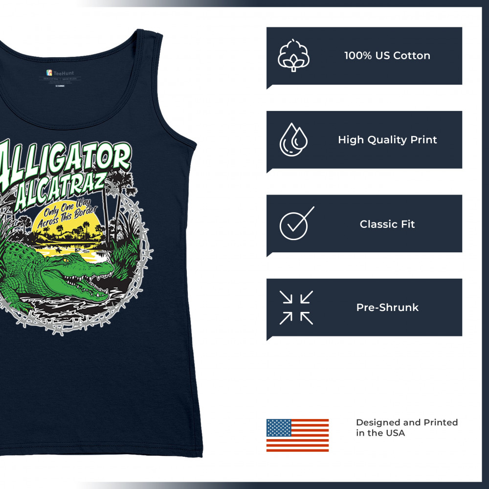 Alligator Alcatraz design with border security message. For conservative, Republican, and patriotic Americans who stand for America First values.