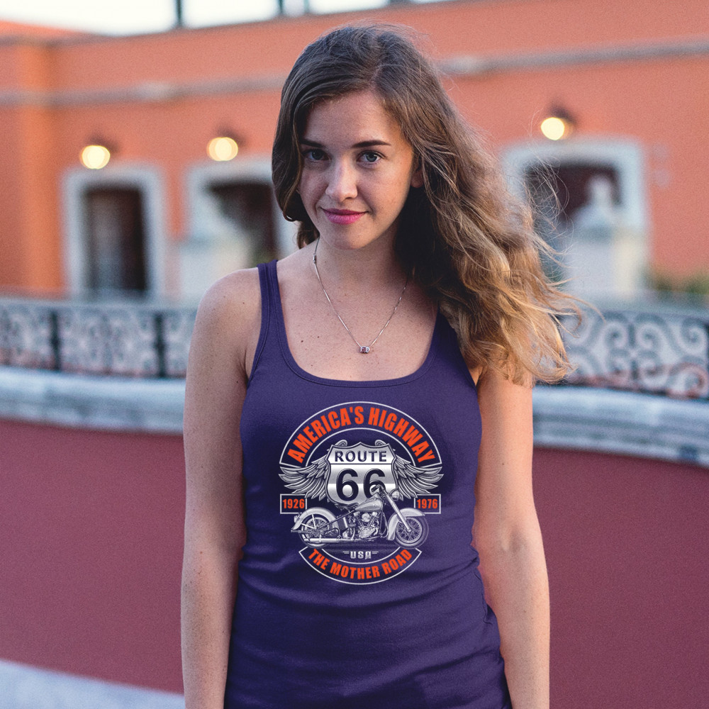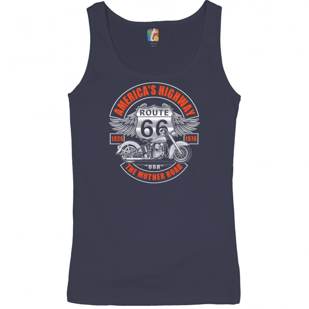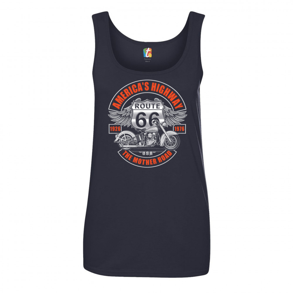 AMERICA'S HIGHWAY THE MOTHER ROAD women's tank top route 66 biker motorcycle navy blue