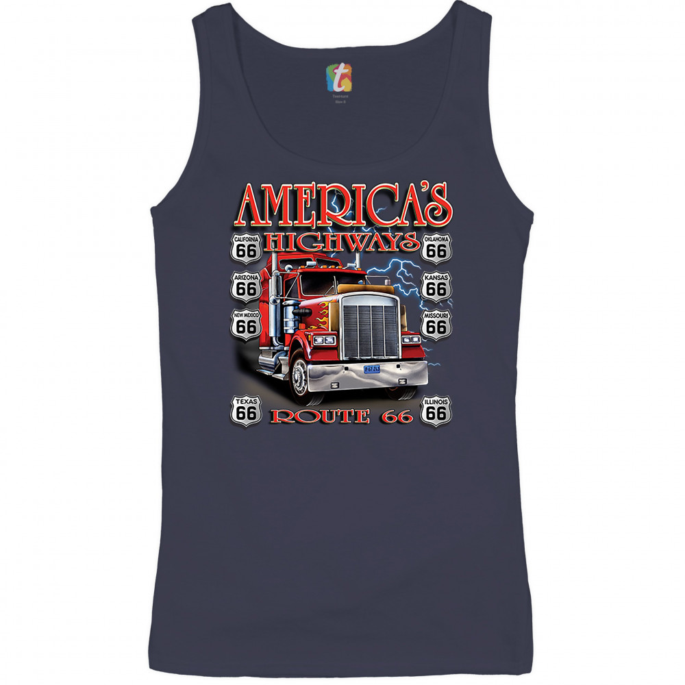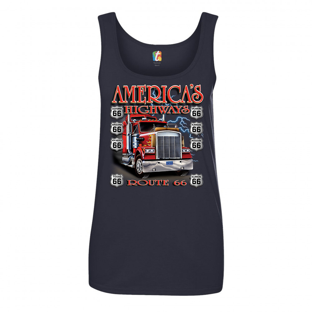 AMERICA'S HIGHWAYS ROUTE 66 women's tank top truck driver mechanic teamster navy blue