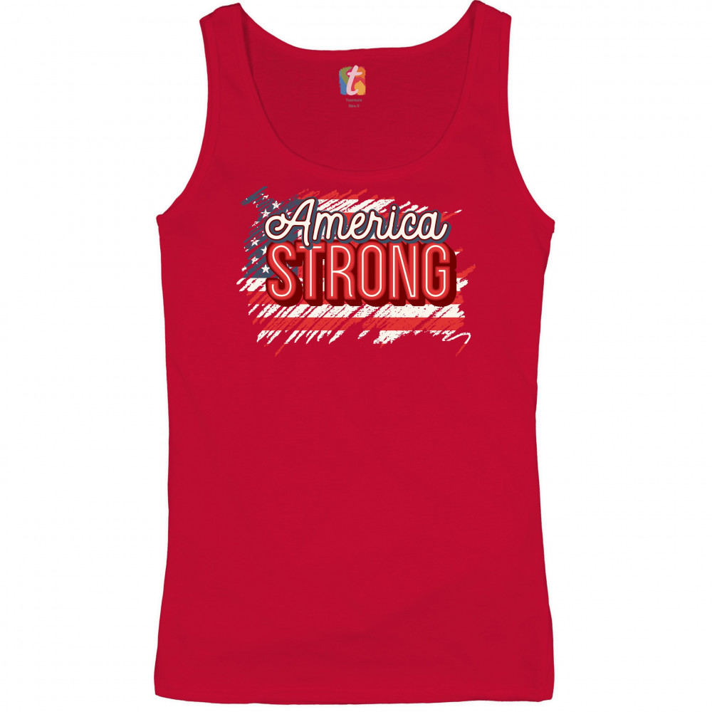 AMERICA STRONG women's tank top distressed american flag 4th of july usa red