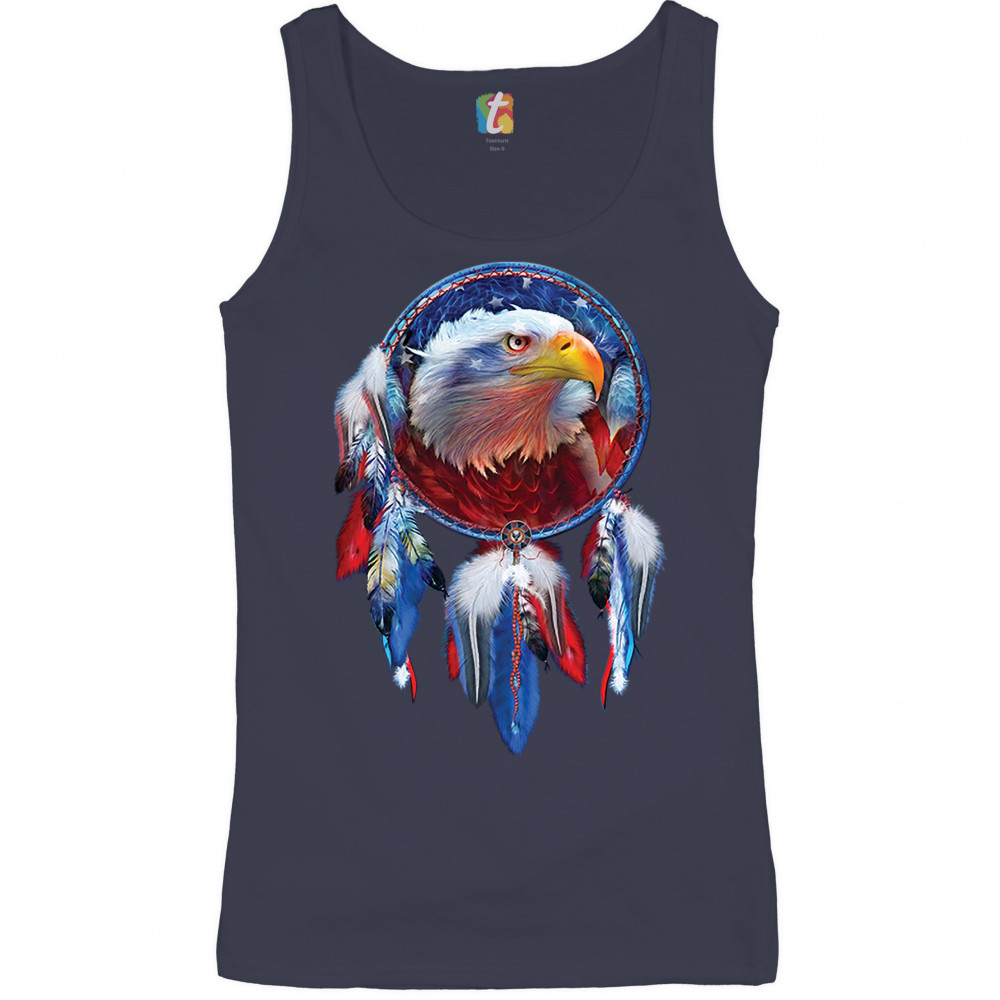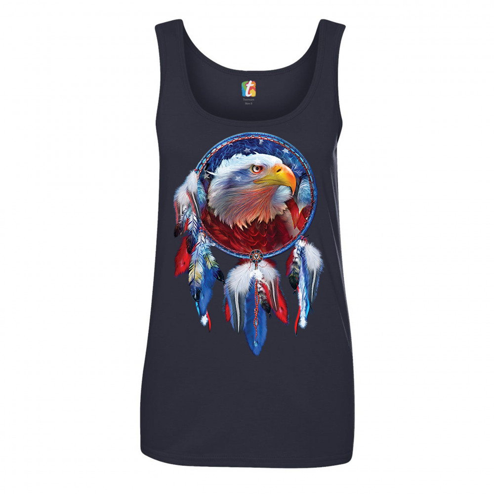 AMERICAN BALD EAGLE DREAMCATCHER women's tank top native american patriotic navy blue