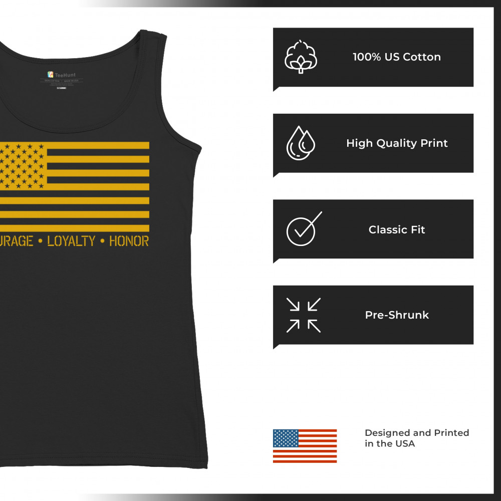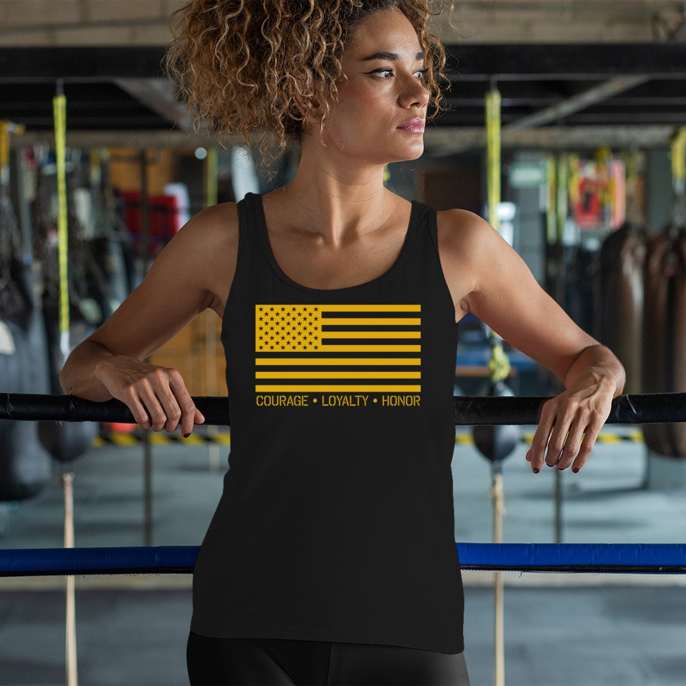 AMERICAN FLAG COURAGE LOYALTY HONOR women's tank top military air force army black