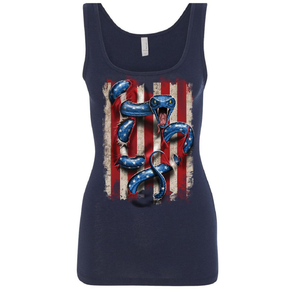 AMERICAN SERPENT women's tank top don't tread on me gadsden flag top navy blue