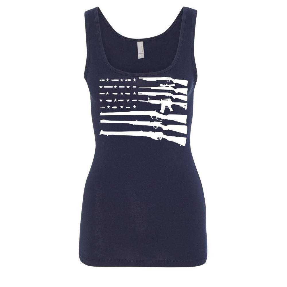 AMERICAN GUN FLAG american flag guns 2nd amendment women's tank top gun rights navy blue