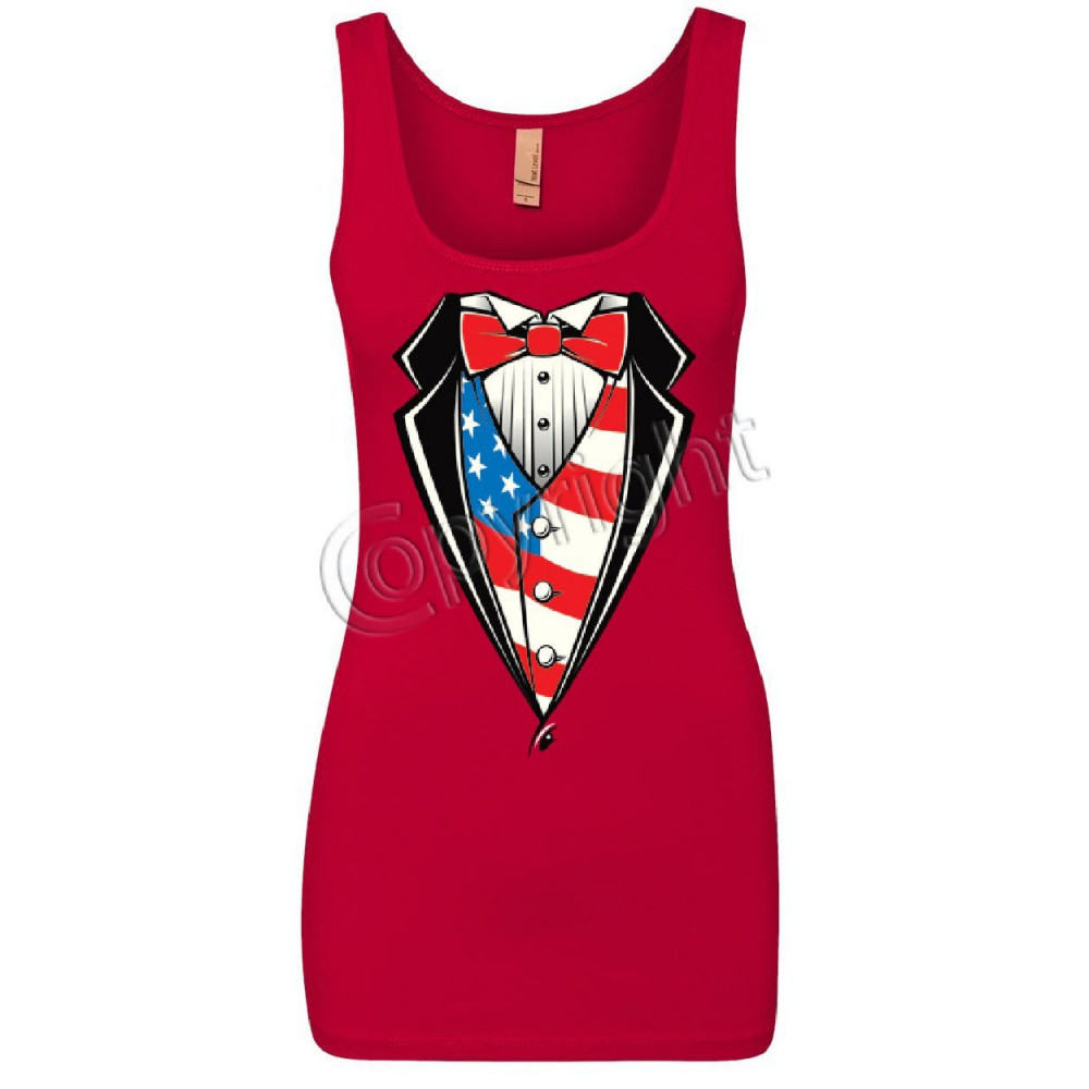 AMERICAN FLAG TUXEDO women's tank top funny 4th of july stars and stripes top red