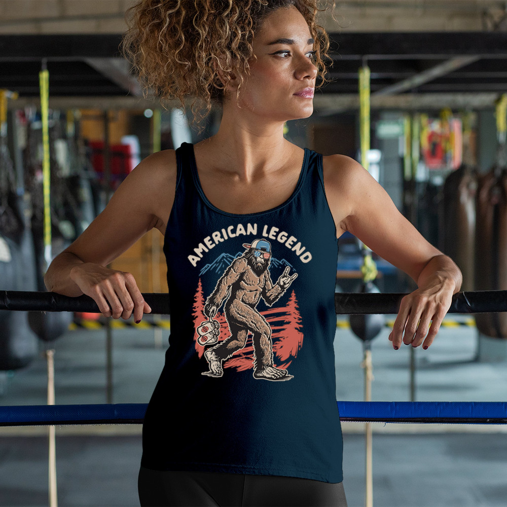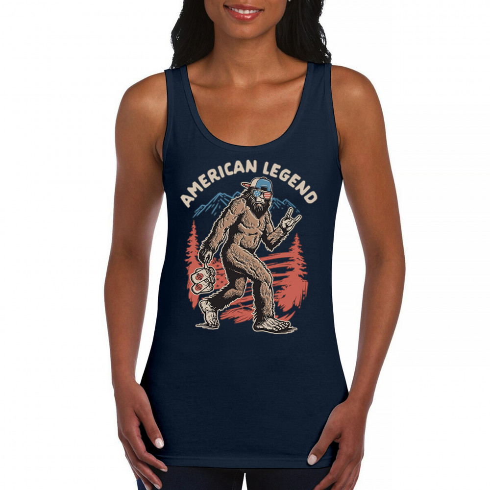 Funny Bigfoot design with patriotic flair—ideal for BBQs, beer lovers, campers, and cryptid fans who love to party in style!