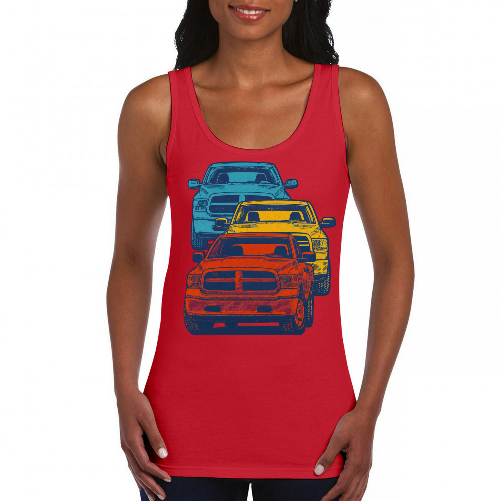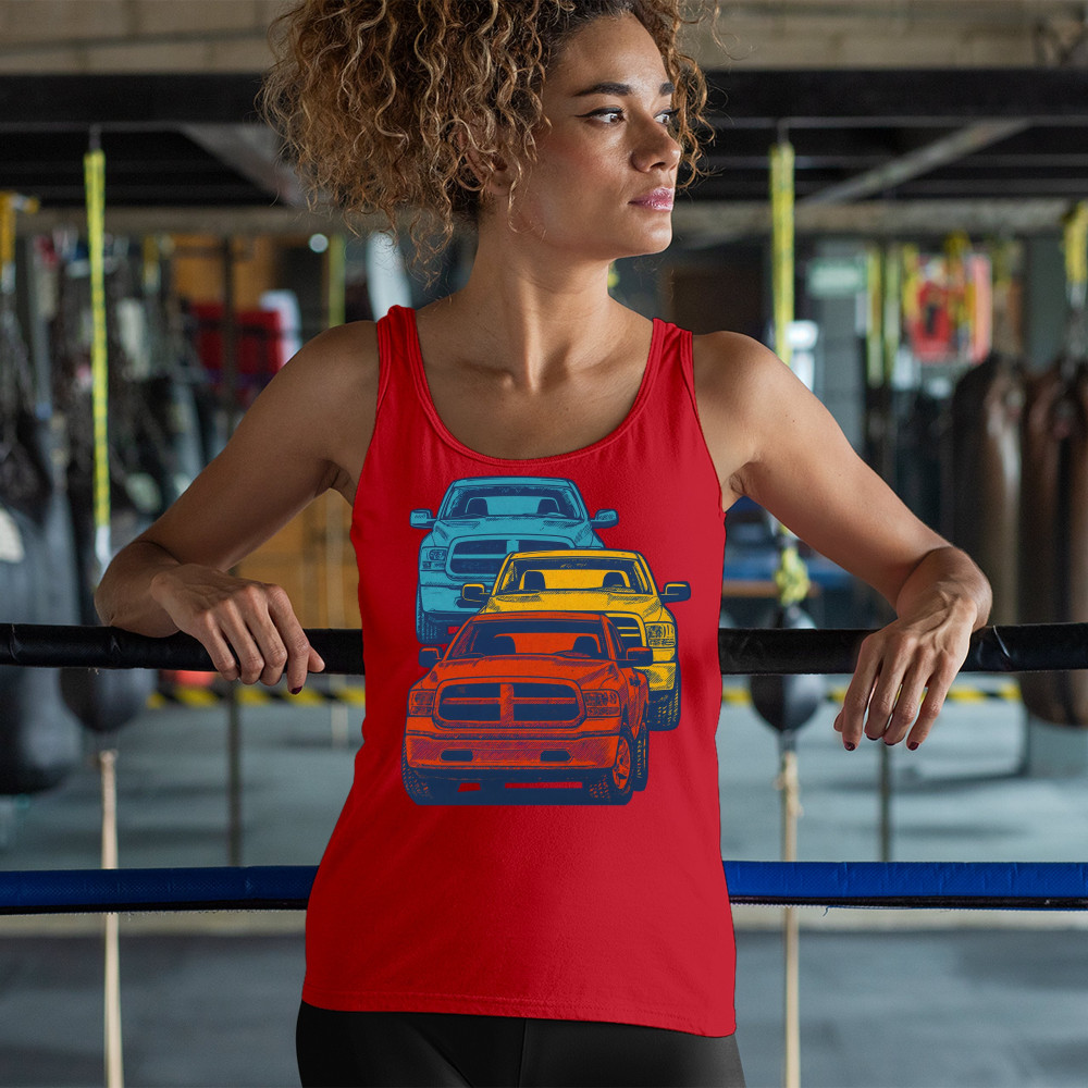 Boldly stacked and powerfully styled, this multicolor truck design showcases red, yellow, and blue pickups in a vertical formation. Made for fans of lifted truck culture, horsepower, and off-road pride, it celebrates diesel grit, road attitude, and the spirit of truck meets and gearhead unity.