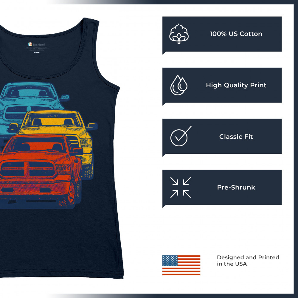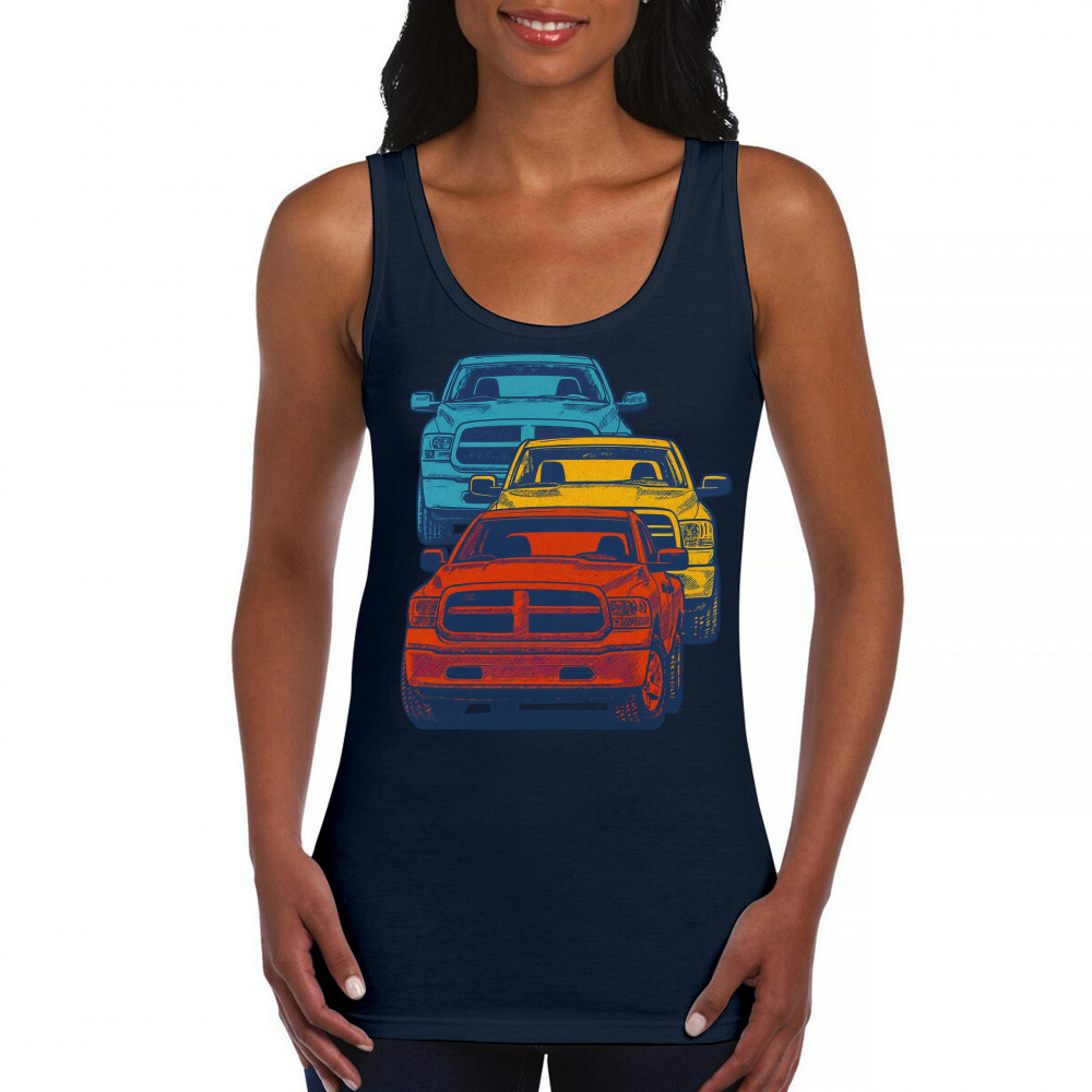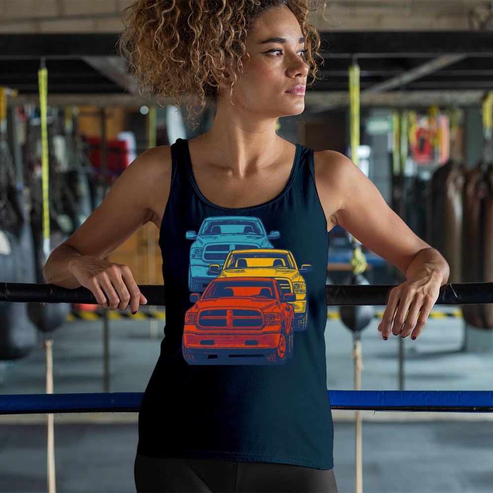 Boldly stacked and powerfully styled, this multicolor truck design showcases red, yellow, and blue pickups in a vertical formation. Made for fans of lifted truck culture, horsepower, and off-road pride, it celebrates diesel grit, road attitude, and the spirit of truck meets and gearhead unity.