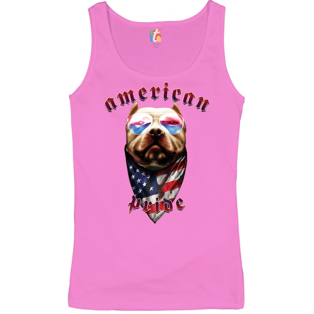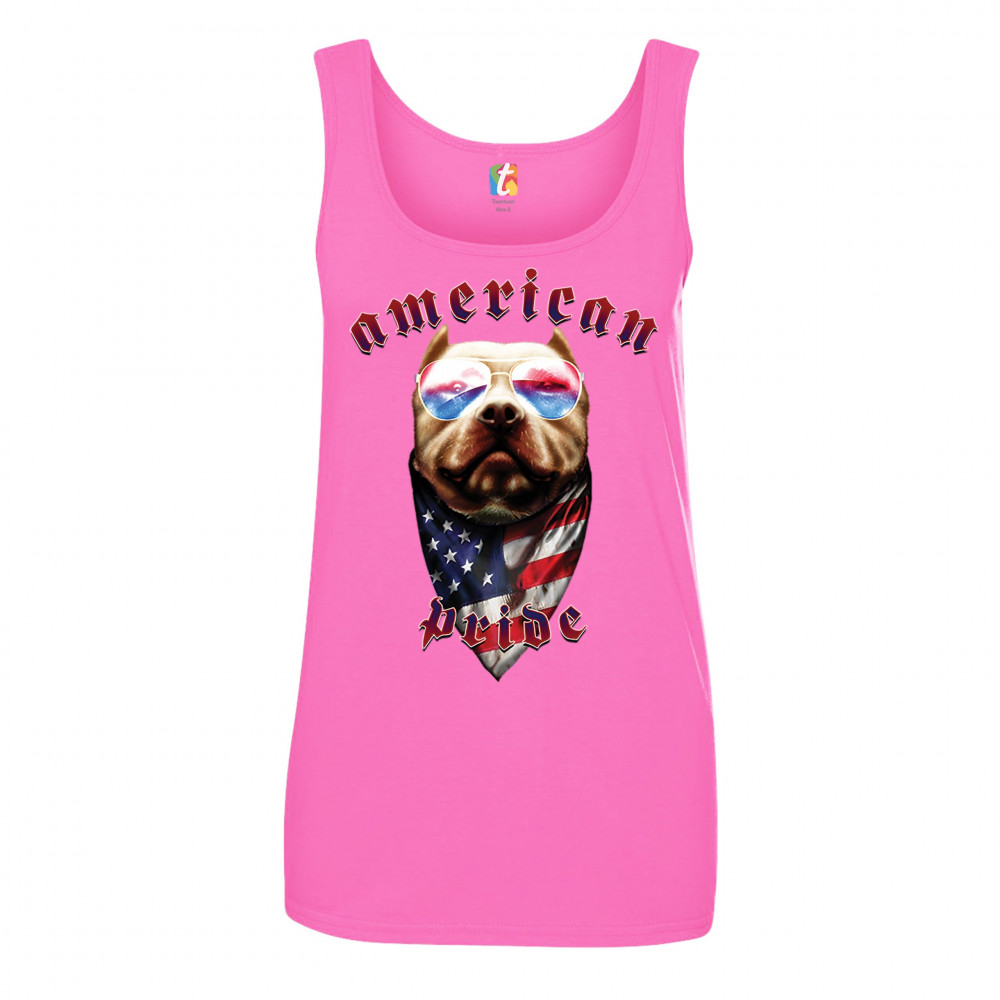 AMERICAN PRIDE PIT BULL women's tank top us flag bandana patriotic dog lover pink