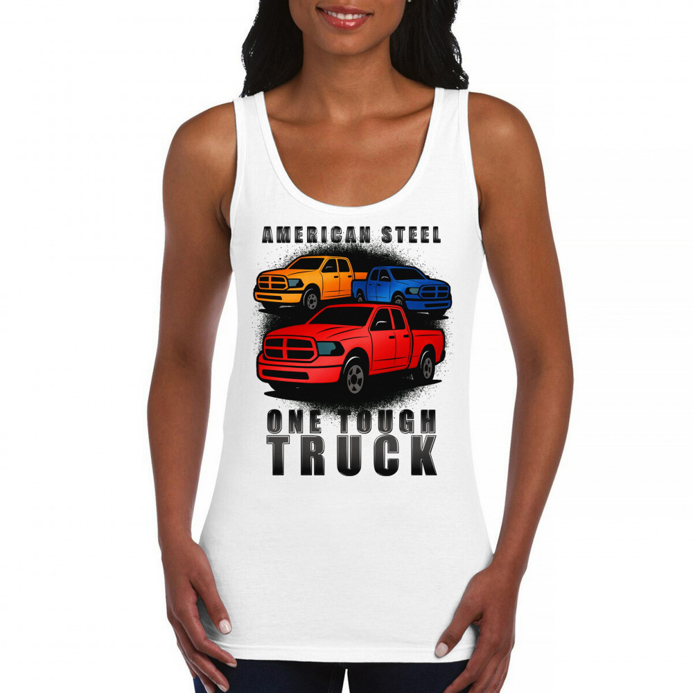 Bold truck design with red, yellow, and blue pickups. Built for fans of American steel, tough performance, and road warrior pride.
