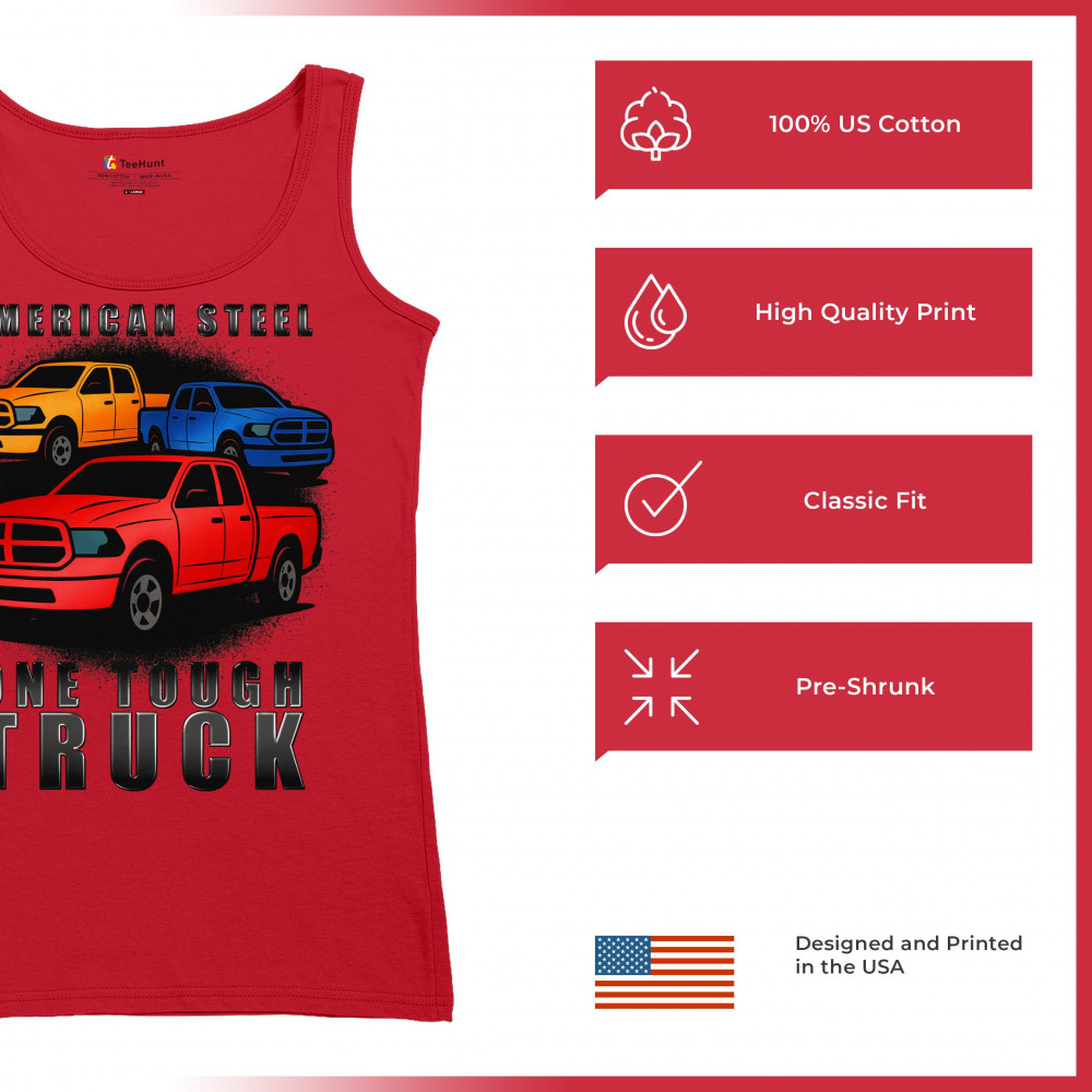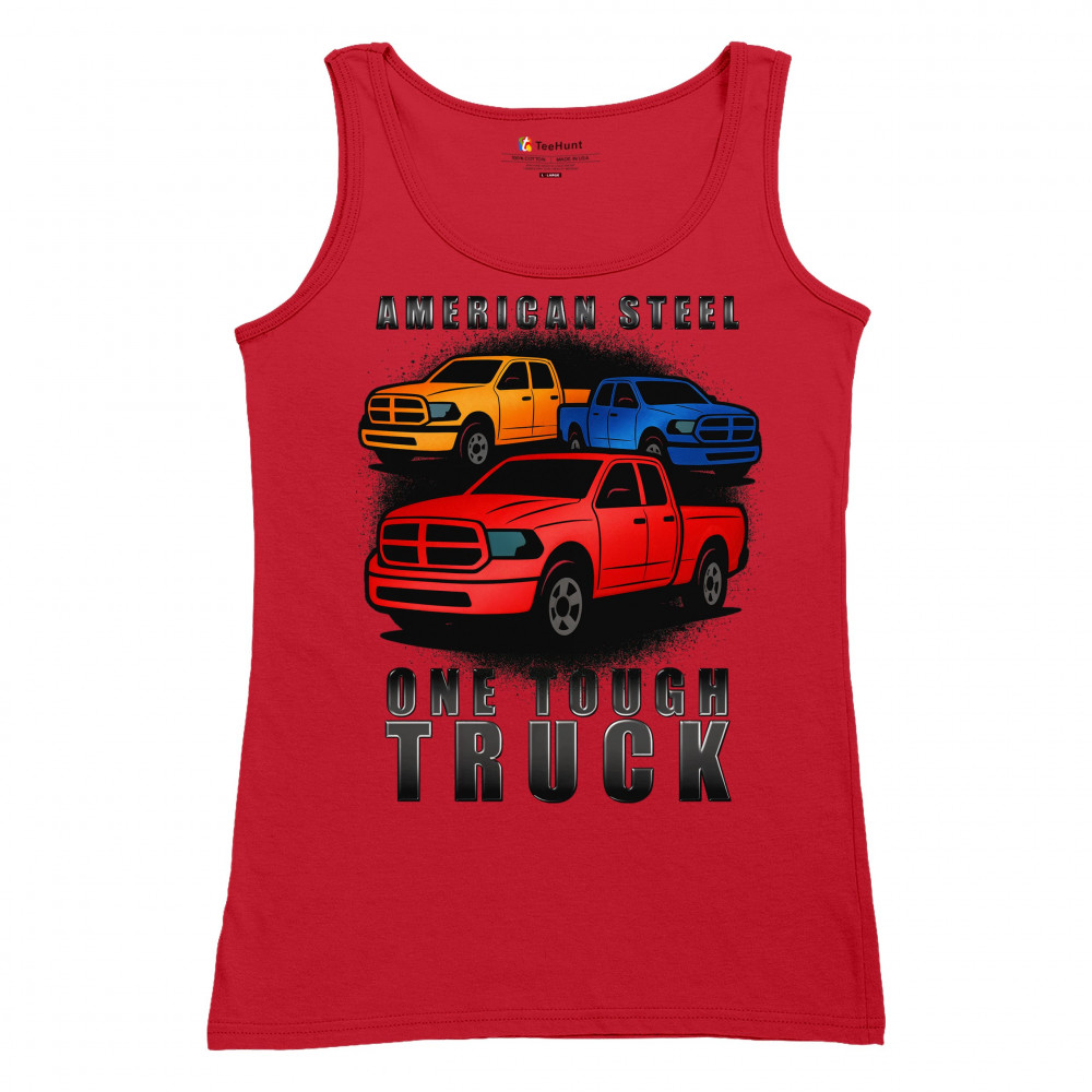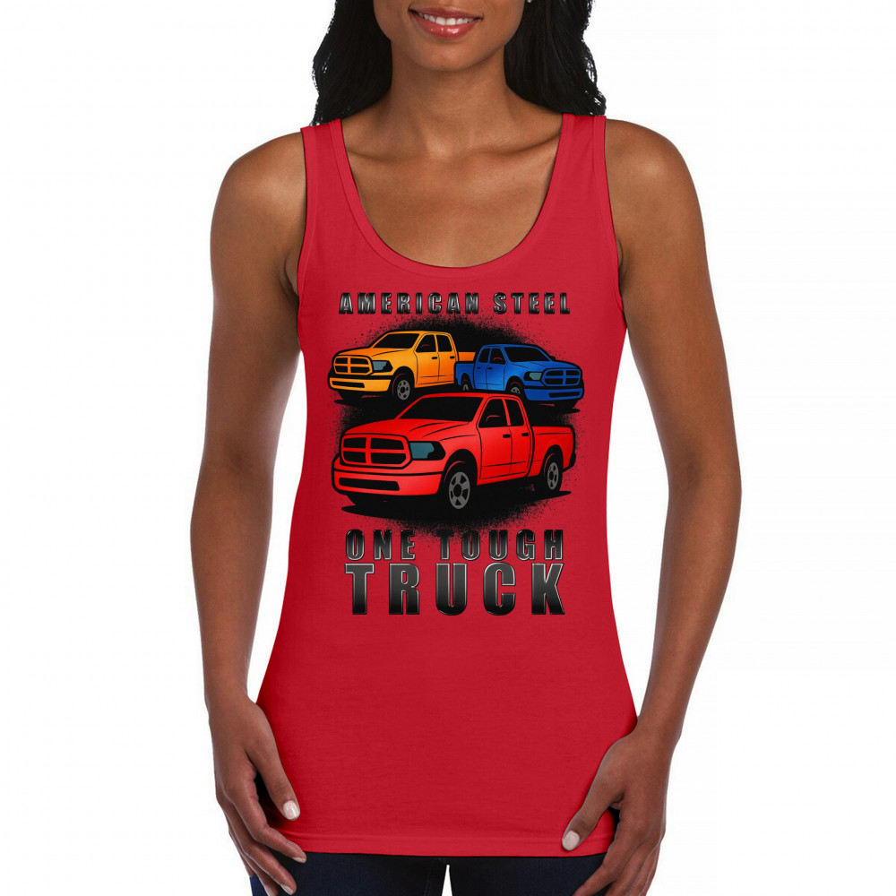 Bold truck design with red, yellow, and blue pickups. Built for fans of American steel, tough performance, and road warrior pride.