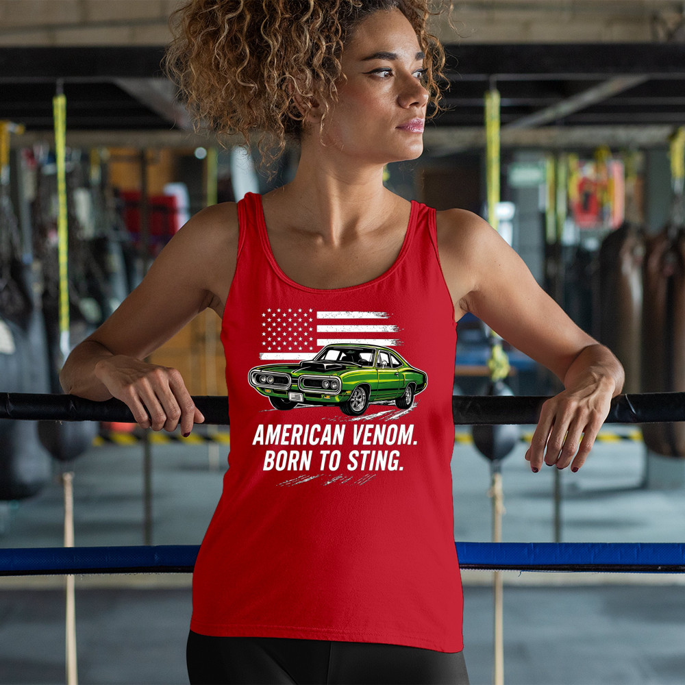 Inject venom into your street style with this bold green muscle car design. With “Born to Sting†power and a backdrop of American pride, this graphic is perfect for Scat fans, gearheads, and drivers who embrace speed, dominance, and the sound of true muscle. Rule car meets, rev battles, and highway runs with unmatched attitude.