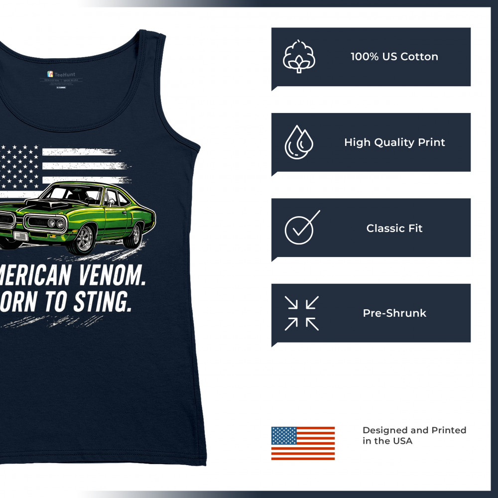 Inject venom into your street style with this bold green muscle car design. With “Born to Sting†power and a backdrop of American pride, this graphic is perfect for Scat fans, gearheads, and drivers who embrace speed, dominance, and the sound of true muscle. Rule car meets, rev battles, and highway runs with unmatched attitude.