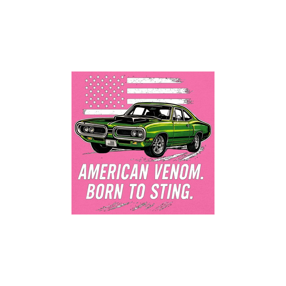 Inject venom into your street style with this bold green muscle car design. With “Born to Sting†power and a backdrop of American pride, this graphic is perfect for Scat fans, gearheads, and drivers who embrace speed, dominance, and the sound of true muscle. Rule car meets, rev battles, and highway runs with unmatched attitude.