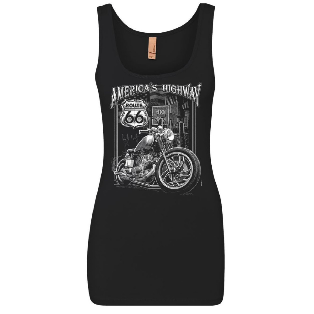 AMERICA'S HIGHWAY HISTORIC ROUTE 66 america's highway women's tank top route 66 mc motorcycle chopper bobber top black