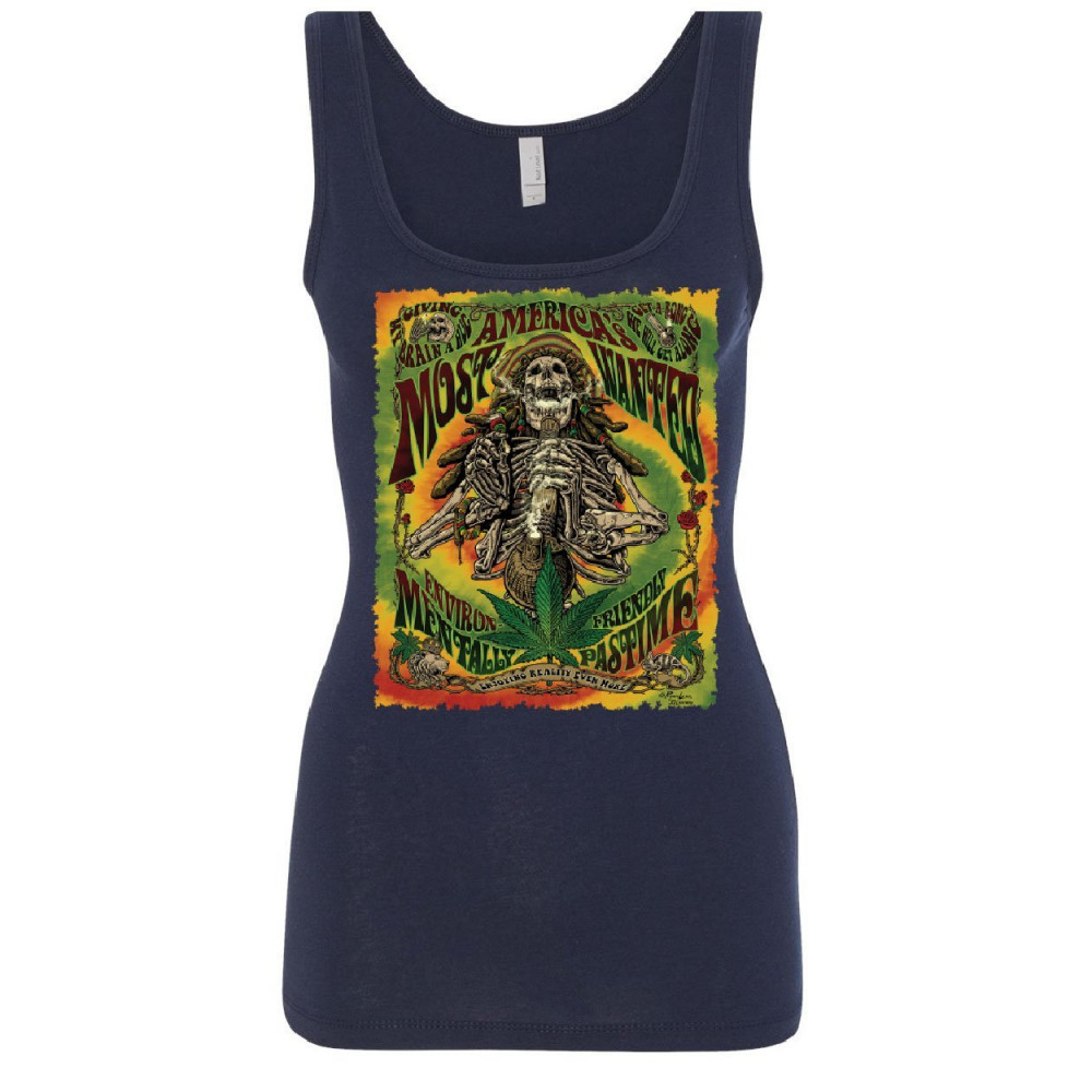 AMERICA'S MOST WANTED women's tank top 420 smoking weed marijuana rasta top navy blue