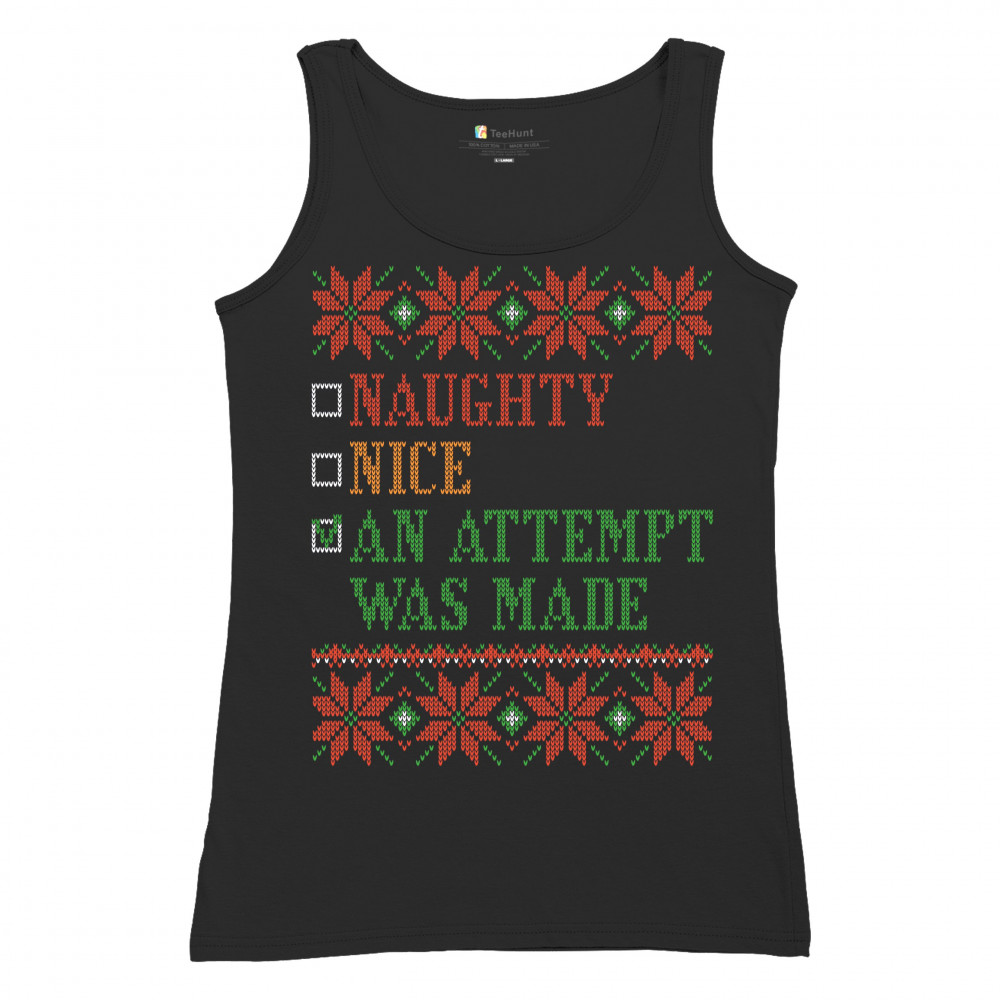 AN ATTEMPT WAS MADE women's tank top ugly sweater naughty or nice christmas black
