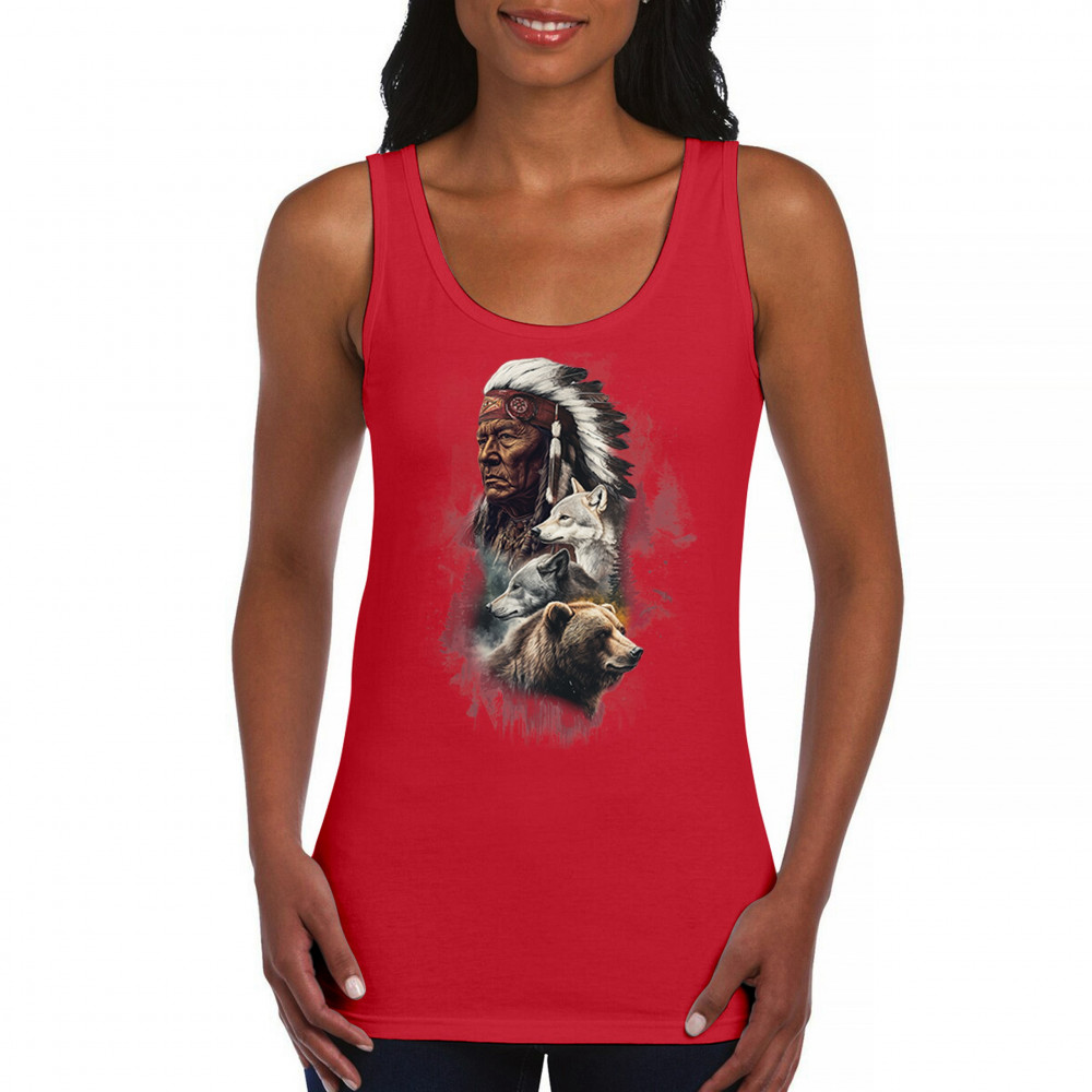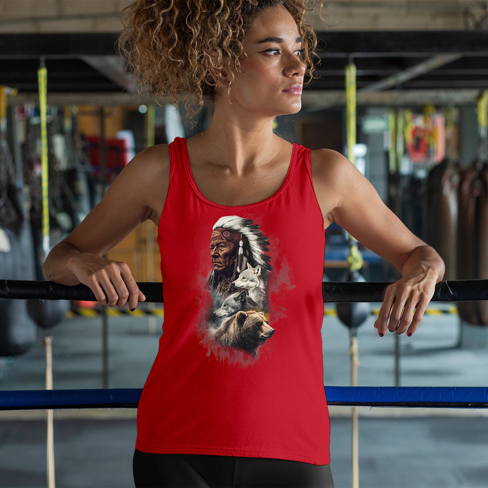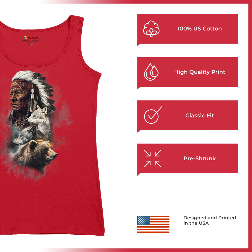 Celebrate spiritual strength and heritage with this design featuring a Native American elder alongside wolves and a bear. This tribal and totemic art reflects wisdom, guardianship, and deep forest spirit energy. Perfect for cultural pride, animal lovers, and those connected to spiritual symbolism in nature.