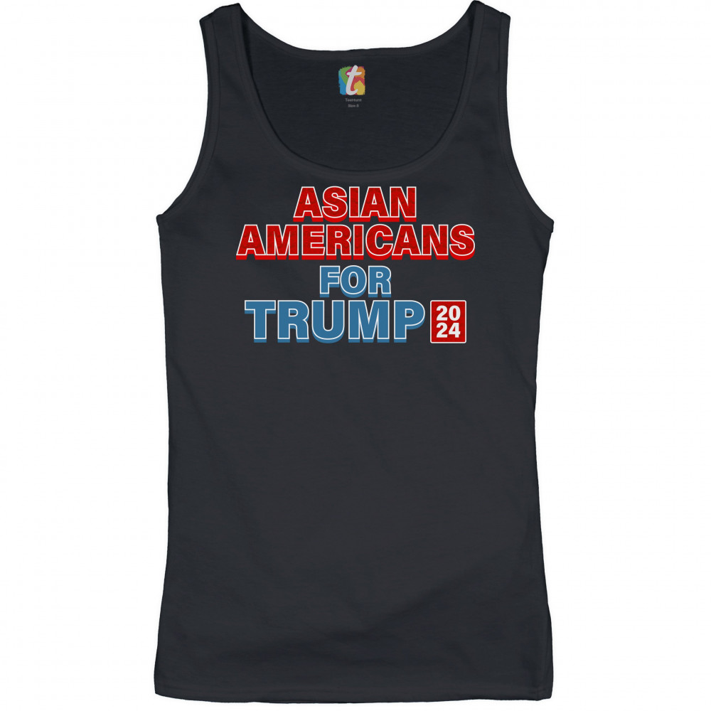 A political print saying "Asian Americans for Trump 2024". The words "Asian Americans" and the square with 2024 also have a pattern inside. A great choice to wear for a Trump rally or give as a gift to a Donald Trump supporter before 2024 presidential ele