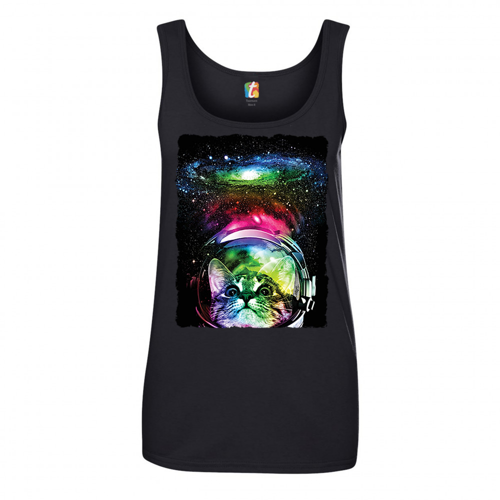 A beautiful print featuring a cat in space wearing a helmet. Above the cat's head there is a galaxy. A great choice for any cat person and space enthusiast.