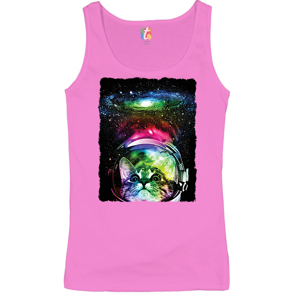 A beautiful print featuring a cat in space wearing a helmet. Above the cat's head there is a galaxy. A great choice for any cat person and space enthusiast.
