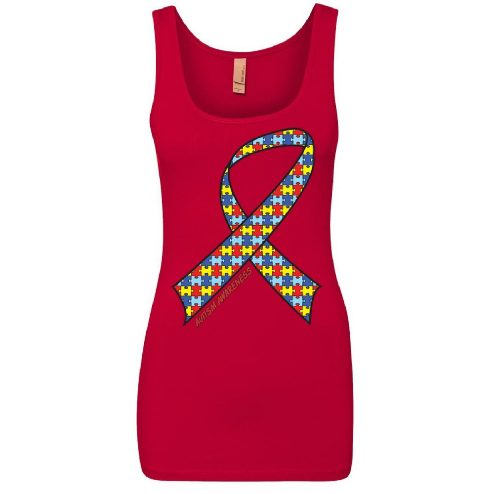 AUTISM AWARENESS RIBBON women's tank top support care love asd asperger top red