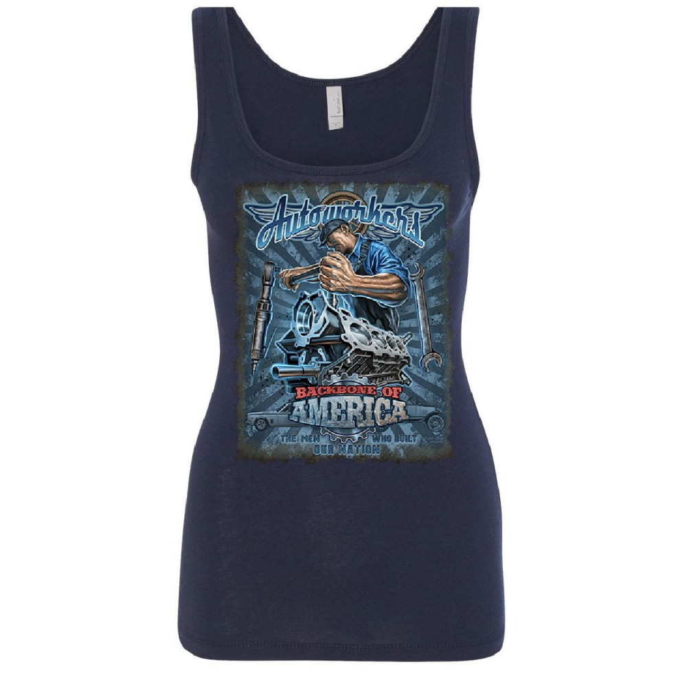 AUTOWORKERS - BACKBONE OF AMERICA autoworkers backbone of america women's tank top car motor mechanic union top navy blue