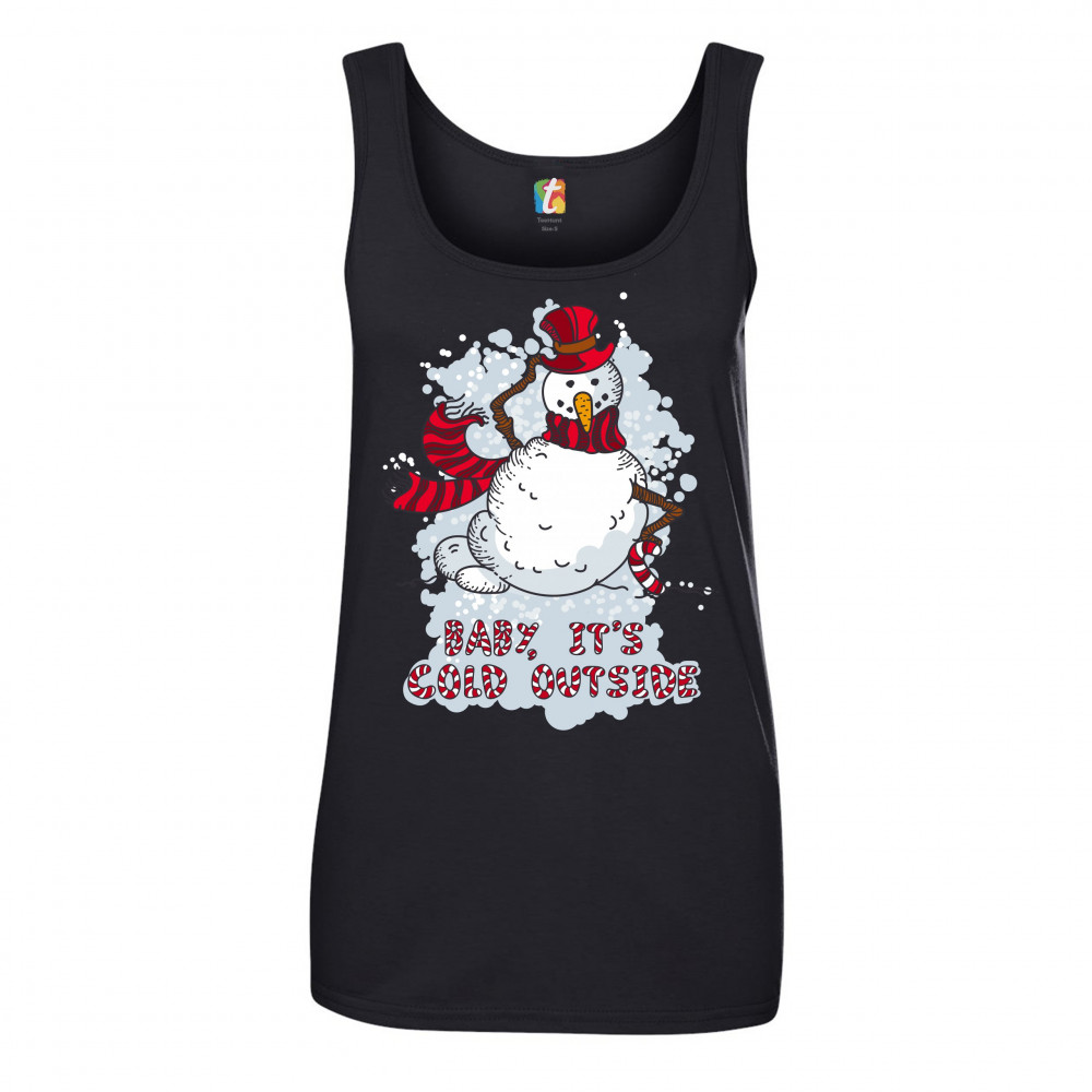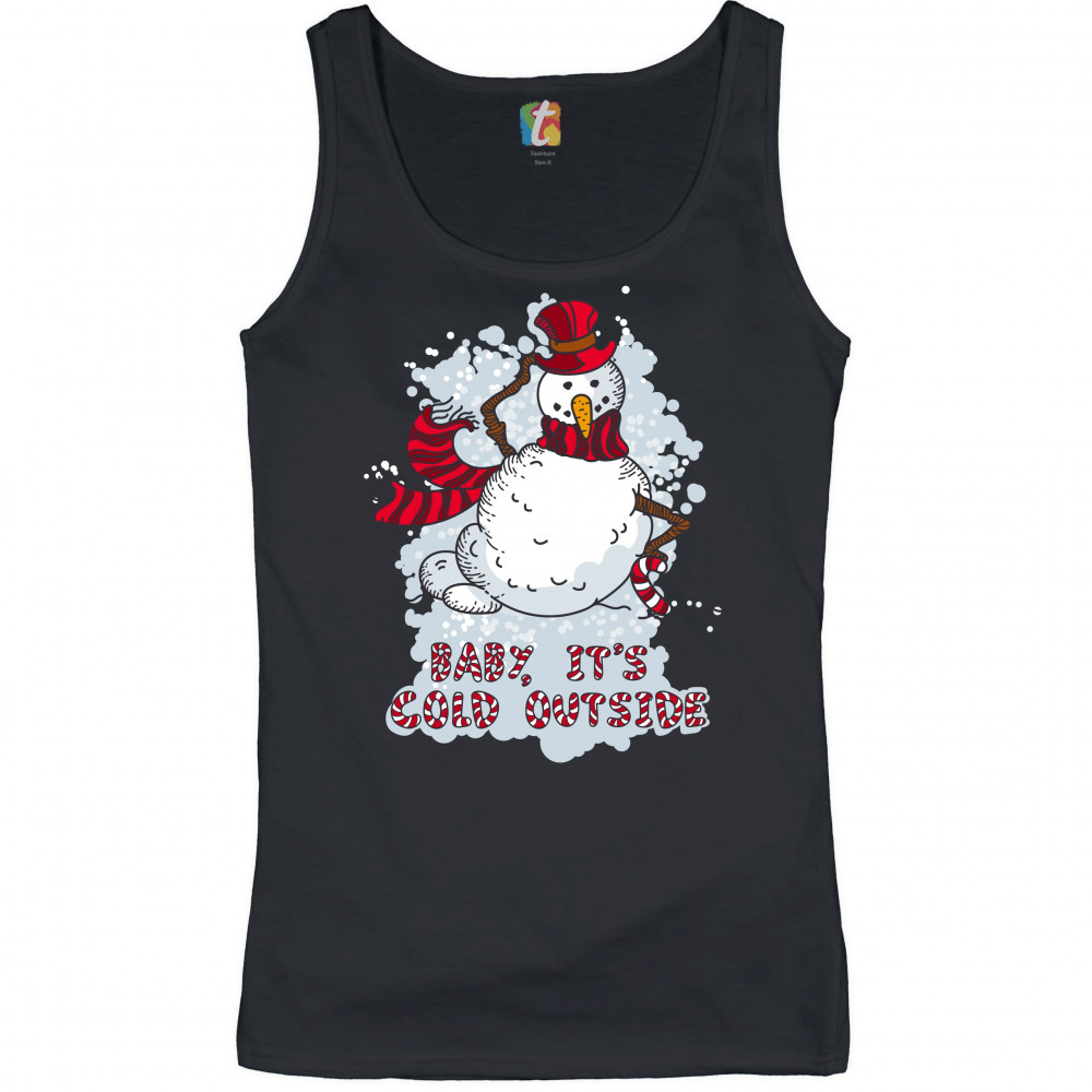 BABY, IT'S COLD OUTSIDE women's tank top merry christmas snowman candy cane black