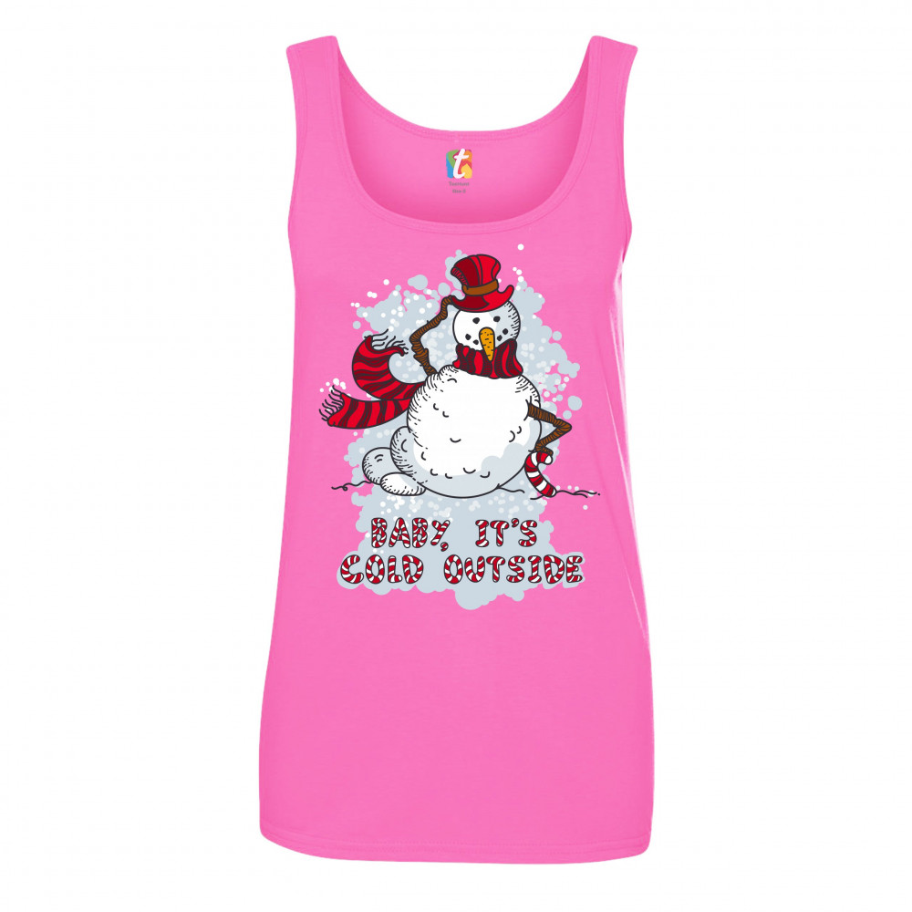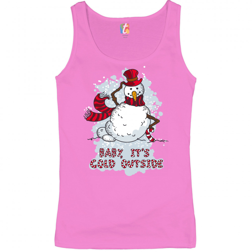 BABY, IT'S COLD OUTSIDE women's tank top merry christmas snowman candy cane pink
