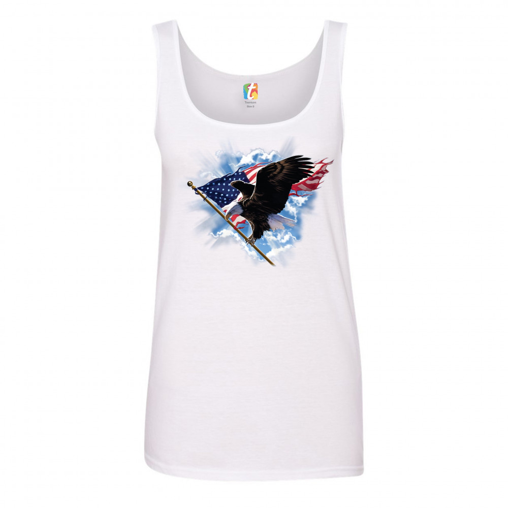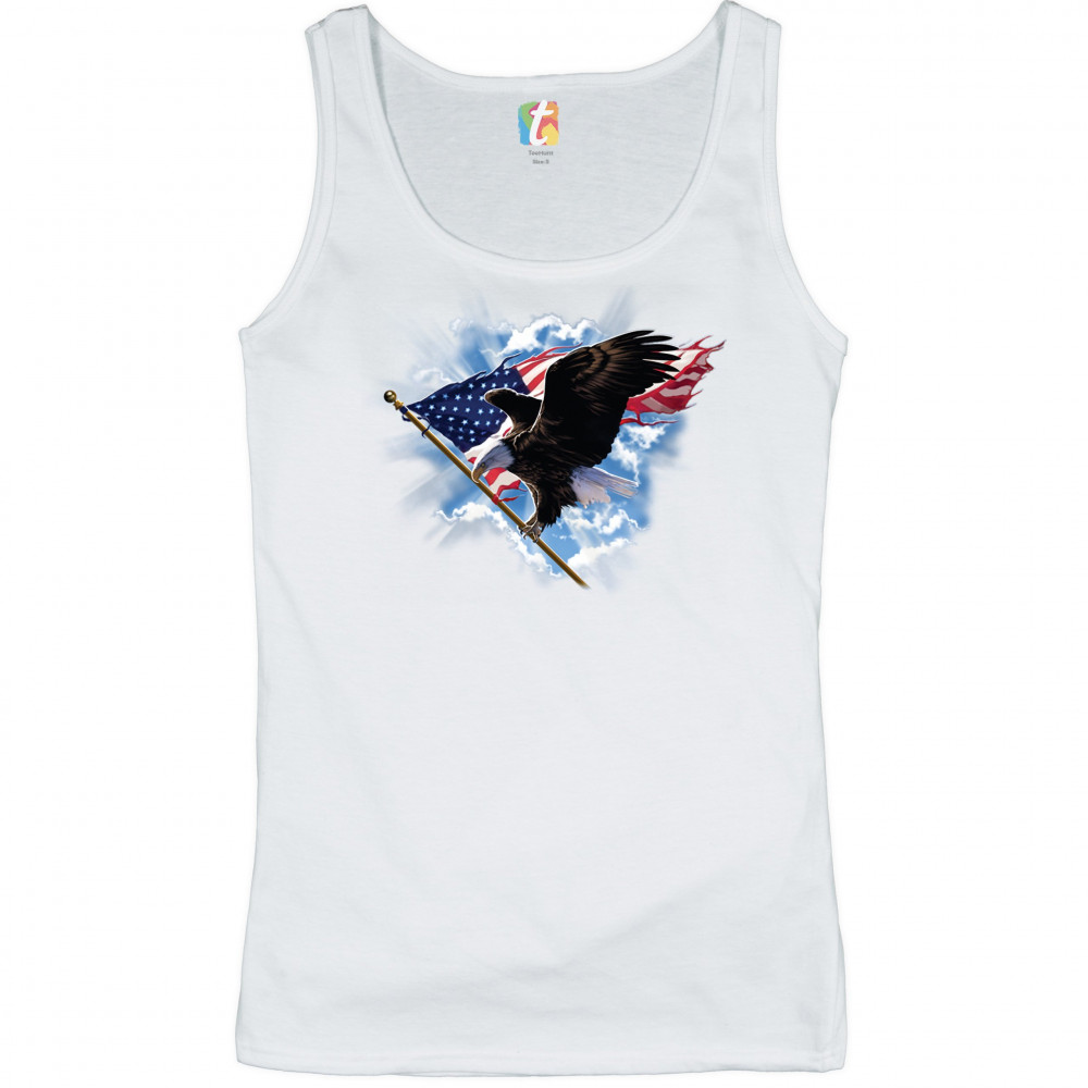 BALD EAGLE CARRYING THE AMERICAN FLAG women's tank top 4th of july patriotic white