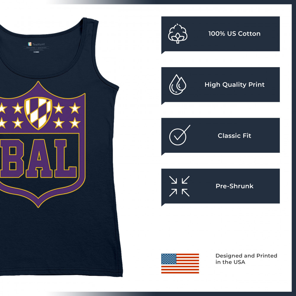 Bold BAL shield design for Baltimore football fans. Vintage sports shirt, collegiate style, and perfect Game Day Baltimore tee.