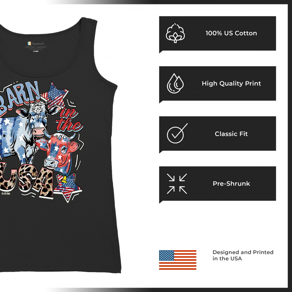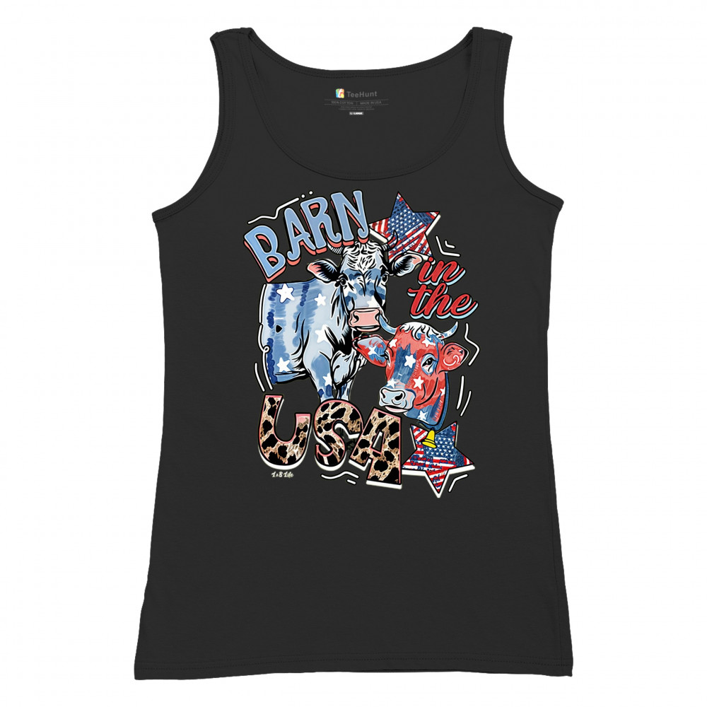 BARN IN THE USA women's tank top farmer farming 4th of july american cowboy black