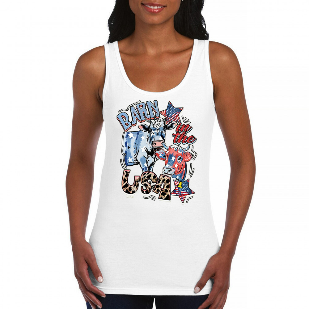 Celebrate American farming and patriotic spirit with our playful "Barn in the USA" design, a blend of whimsy and pride.