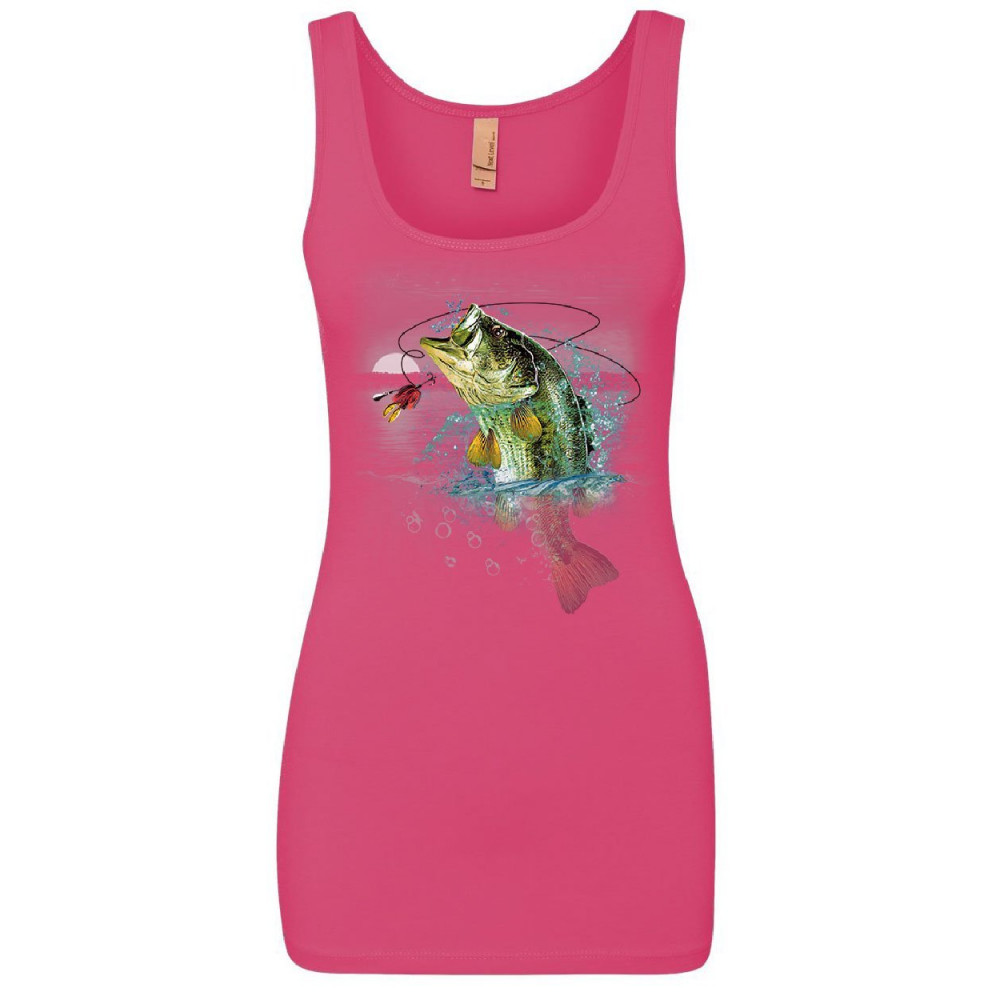 BASS FISHING women's tank top fisherman camping hobby angler lake river top pink