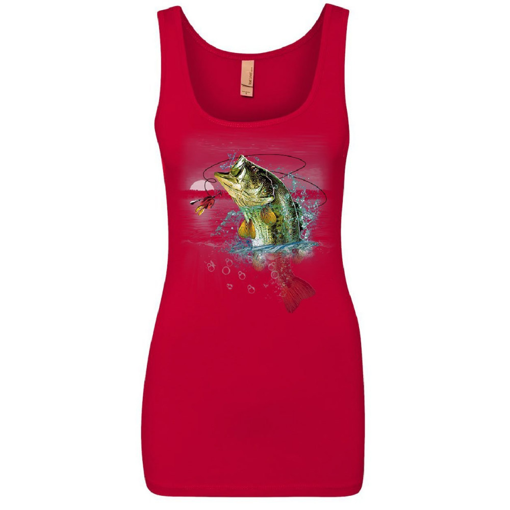 BASS FISHING women's tank top fisherman camping hobby angler lake river top red