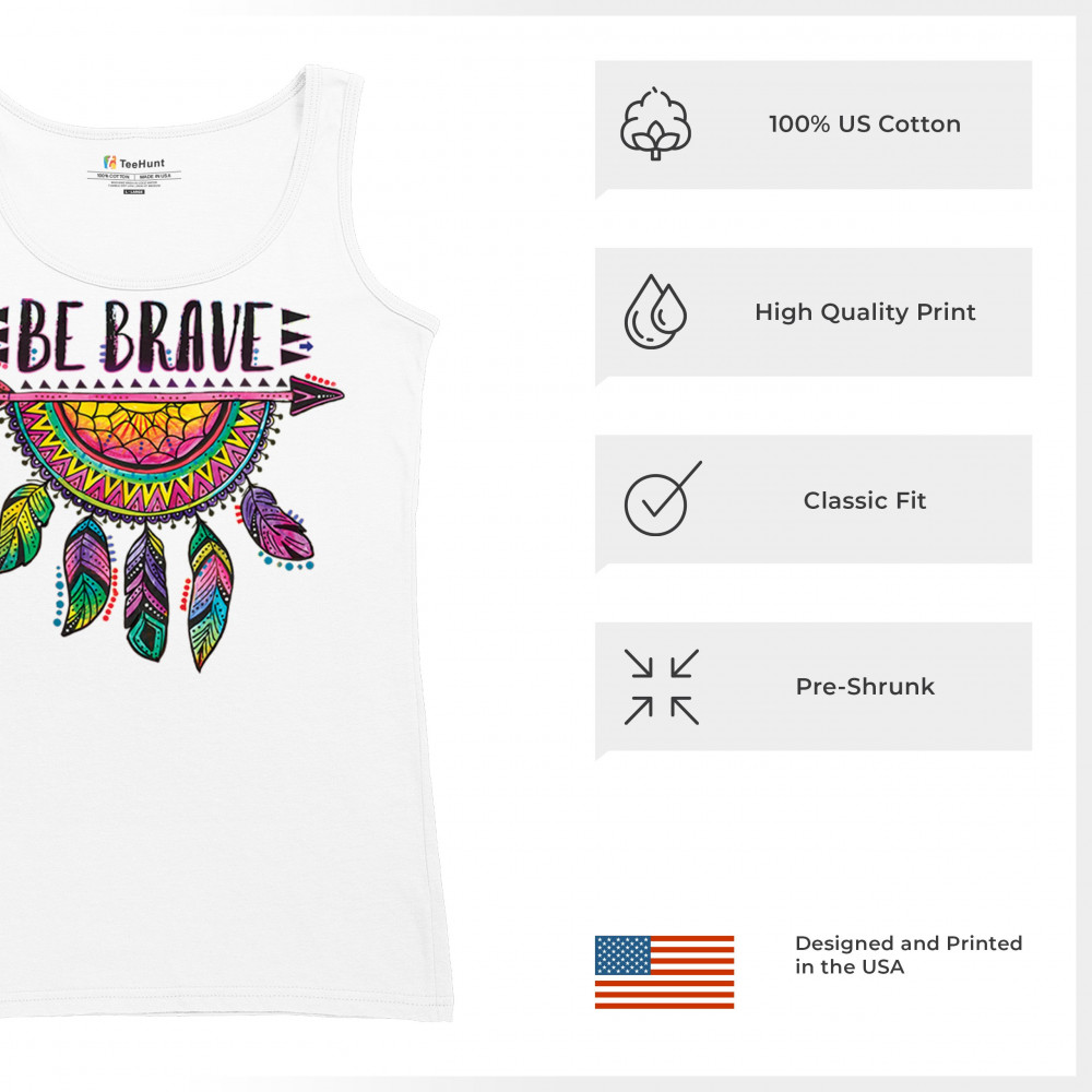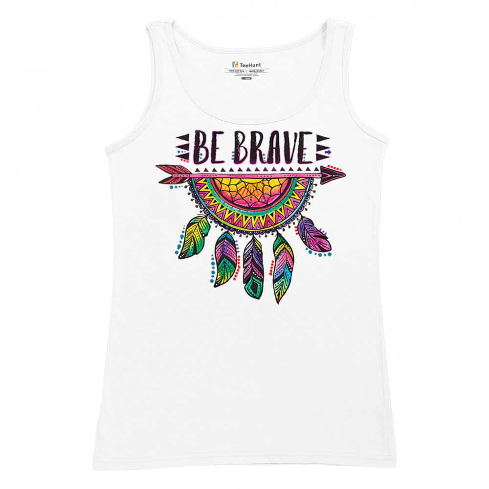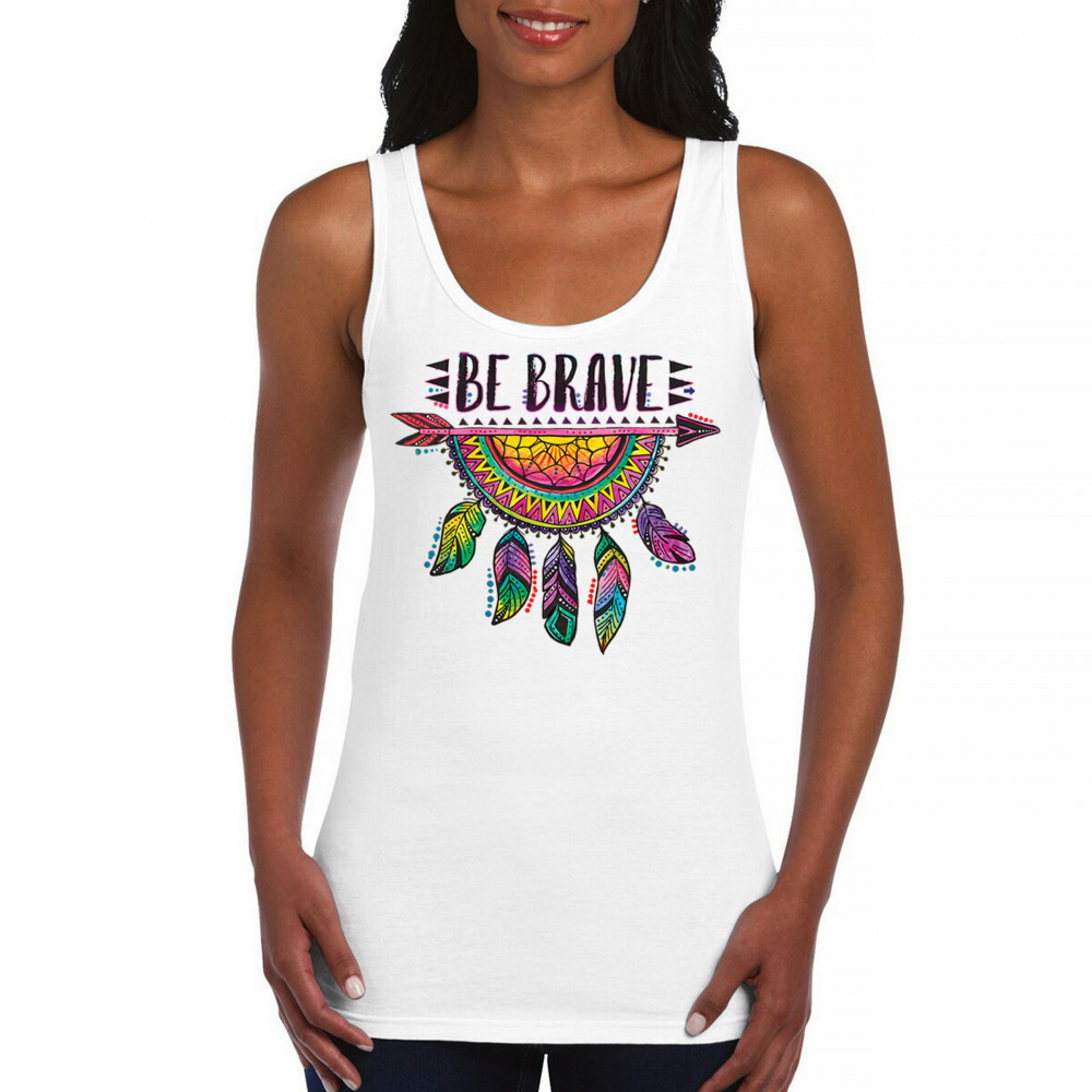 BE BRAVE DREAM CATCHER women's tank top dean russo motivation feather white