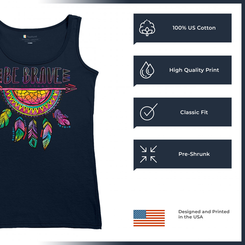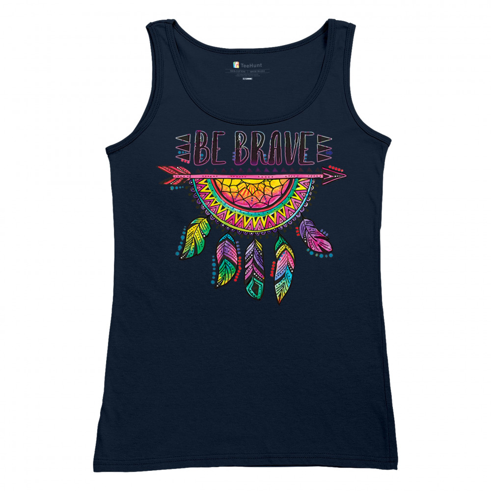 BE BRAVE DREAM CATCHER women's tank top dean russo motivation feather navy blue