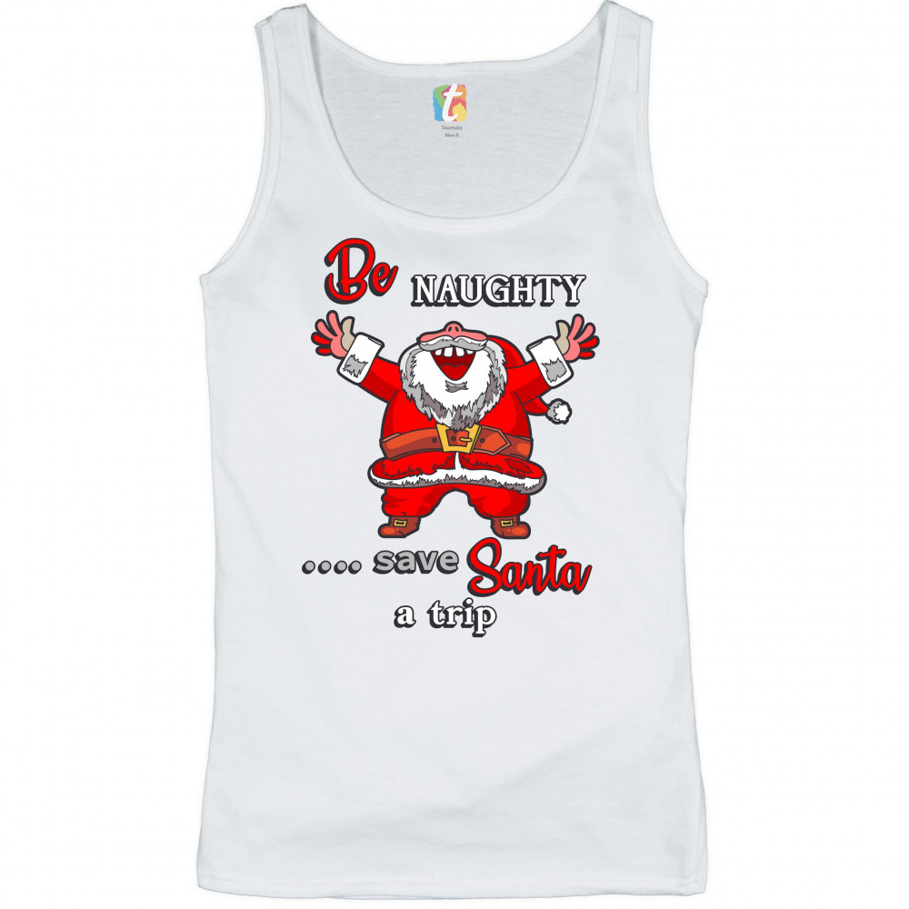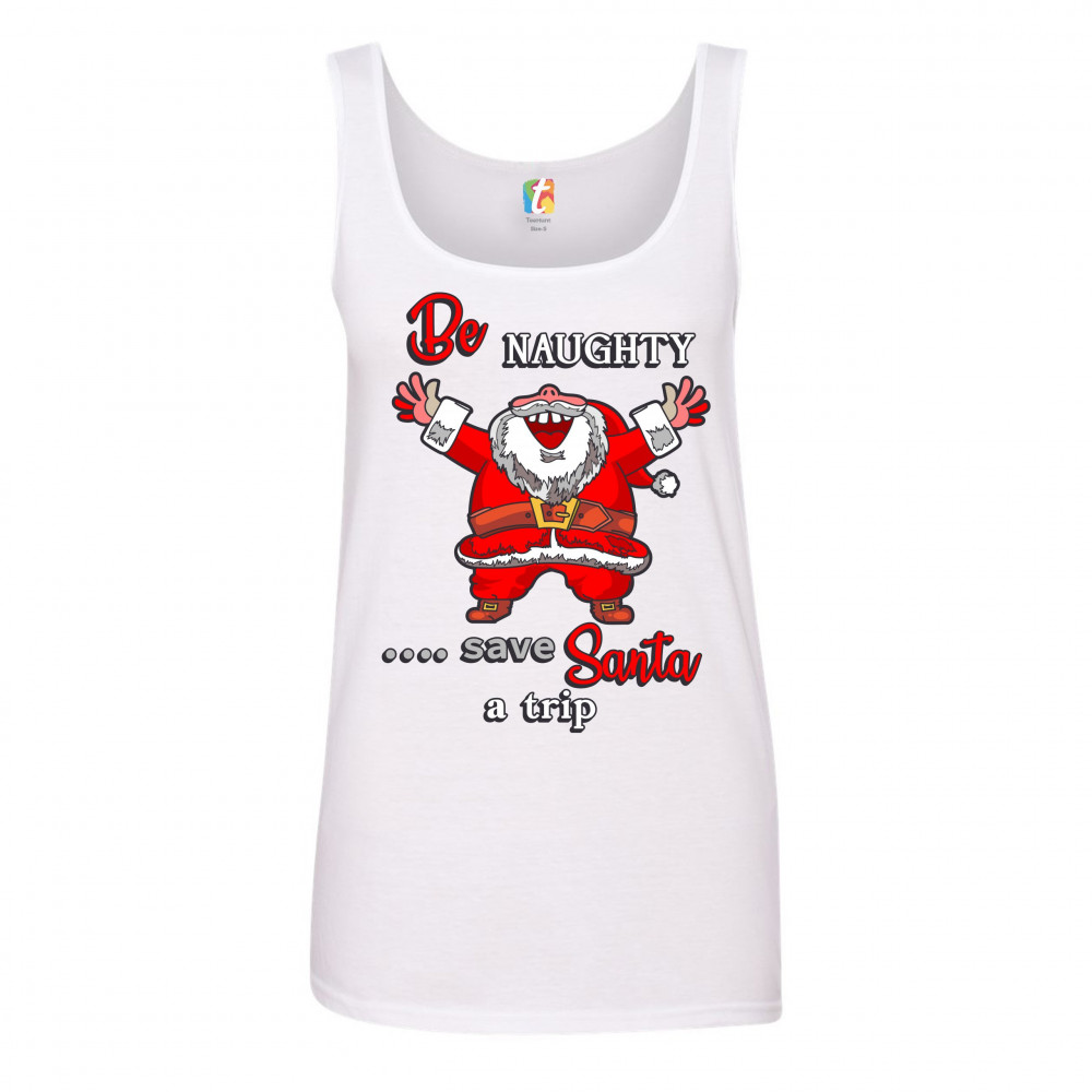 BE NAUGHTY SAVE SANTA A TRIP women's tank top holiday spirit christmas eve white