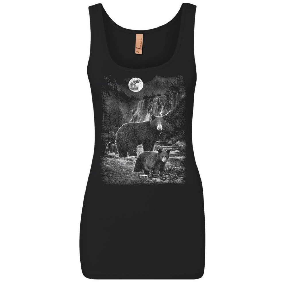 BEARS IN THE NIGHT women's tank top brown bear grizzly wilderness animals top black