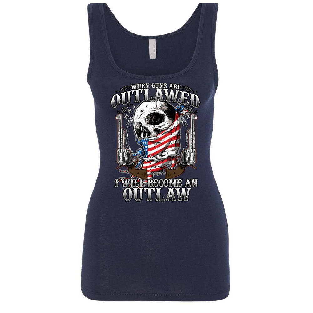 BECOME AN OUTLAW women's tank top 2nd amendment right to bear arms skull top navy blue